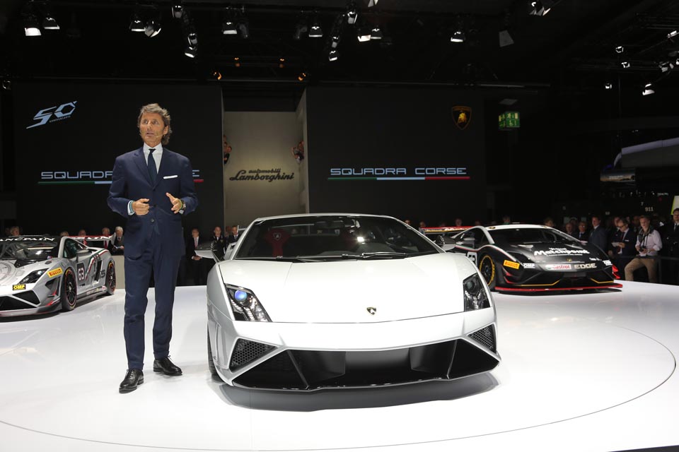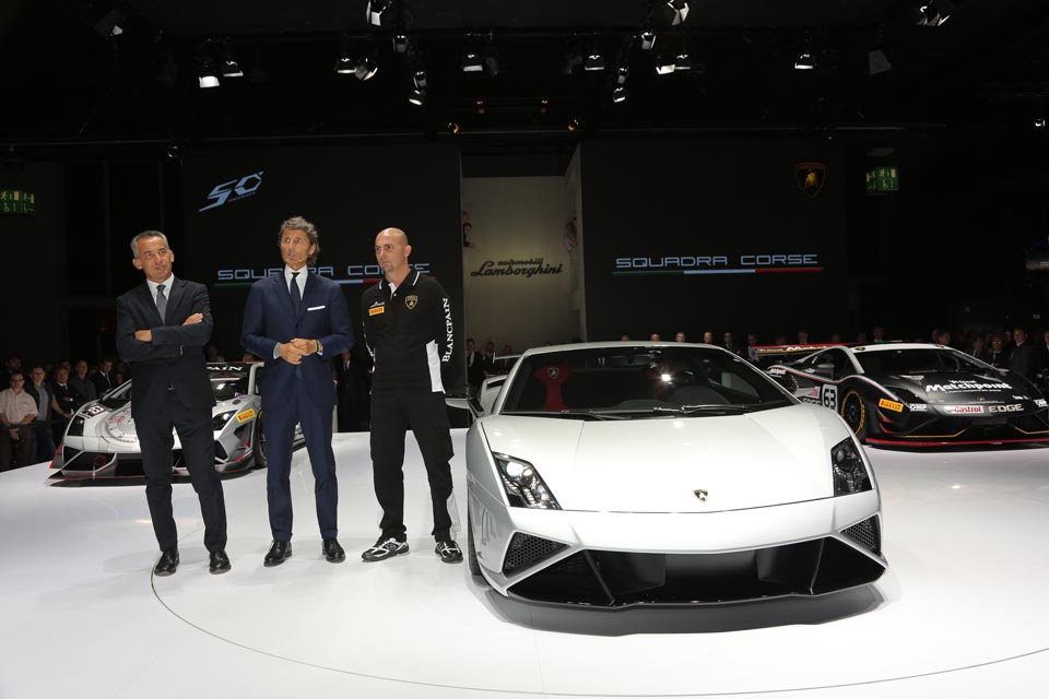 The Lamborghini Gallardo LP570-4 Squadra Corse was presented for the first time at the 2013 Frankfurt Auto Show. The Squadra Corse delivers high levels of performance while bringing the thrills associated with motorsport to the street-legal world. This new and most extreme model in the Gallardo line-up is based on the Gallardo Super Trofeo, the race car that features in the Lamborghini Blancpain Super Trofeo – the world’s fastest one-make series. The Squadra Corse will be a limited production model, priced at € 191.100, plus tax.