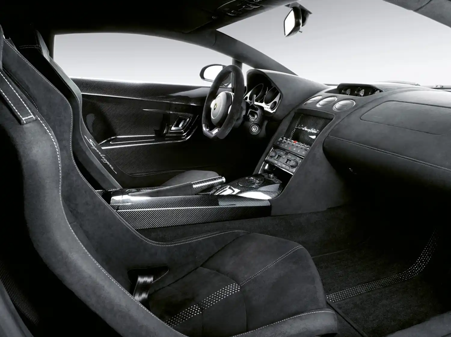 In 2007, the year in which production of the “baby Lambo” exceeded 5000 units since its presentation, the Gallardo Superleggera was presented in Geneva. The new model, thanks to the 10 HP increase in power and a 100 kg weight reduction, was even more dynamic, reaching a weight/power ratio of just 2.5 kg/HP. The Superleggera had a standard robotized mechanical gearbox, becoming a regular feature on all subsequent versions, and was available in four colors at no additional cost: Midas Yellow, Borealis Orange, Telesto Gray and Noctis Black. What’s more, the Superleggera had many carbon fiber parts specifically for the purpose of achieving the important weight reduction, such as the fixed rear spoiler: an iconic optional extra for this version together with carbon-ceramic brakes.