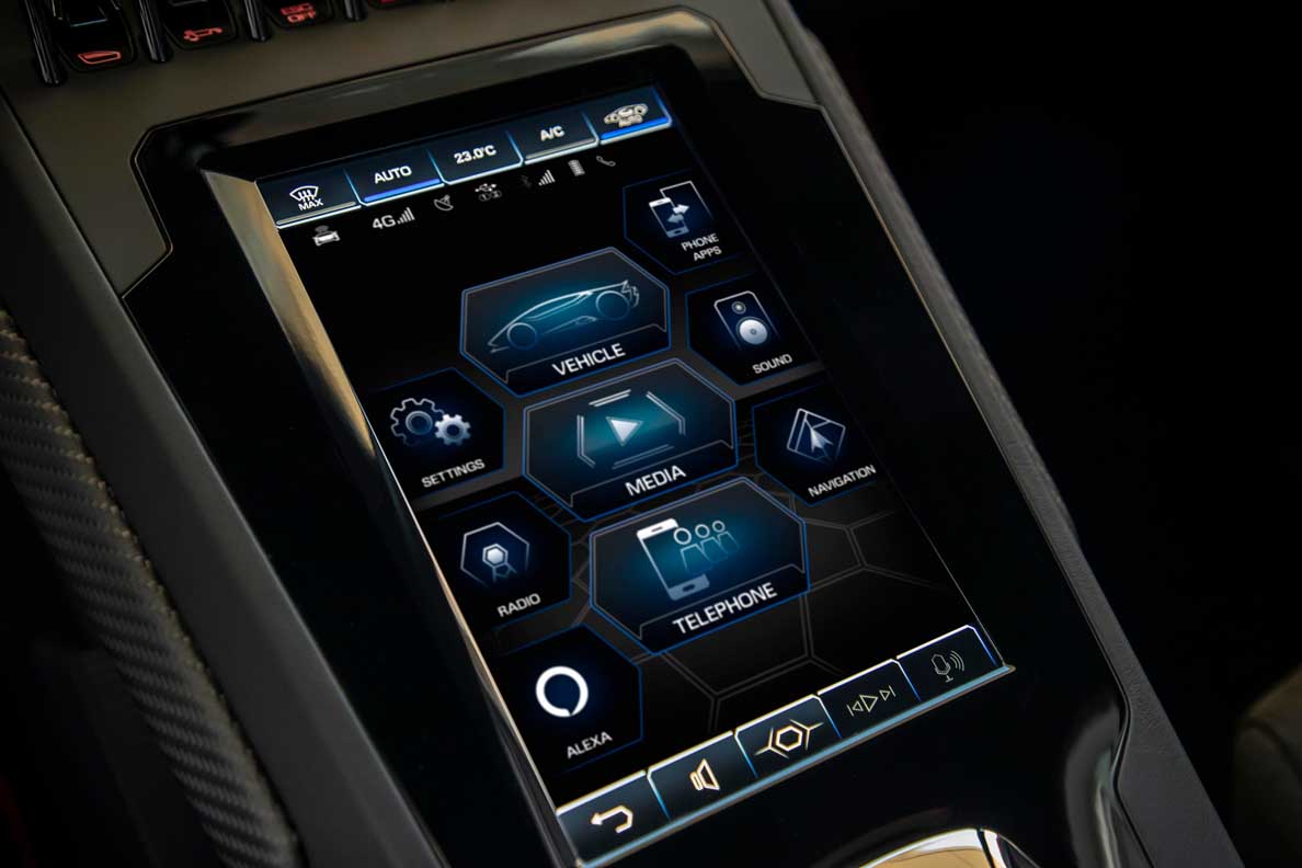 Drivers of the Huracán EVO can adjust in-car functions such as climate, lighting and seat heating, as well as control navigation, telephone calls and entertainment with a simple ‘Alexa’ voice command, leaving them to focus on the road.