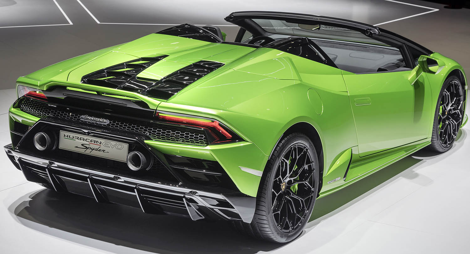 Automobili Lamborghini presented the new Lamborghini Huracán EVO Spyder at 2019 Geneva Motor Show: the open-top car joins its coupé counterpart launched earlier, as the second model in the V10 Huracán EVO line-up.