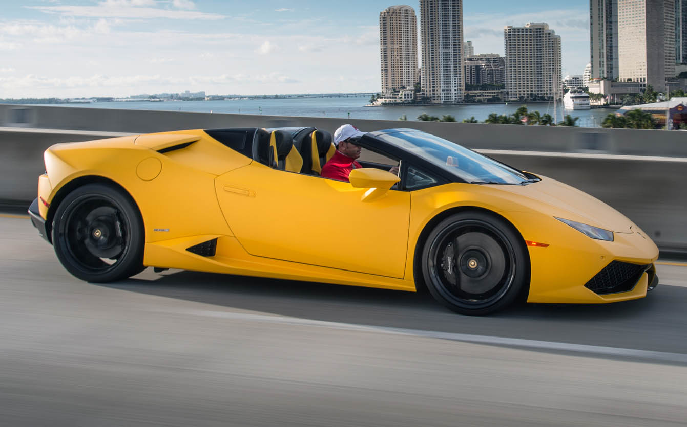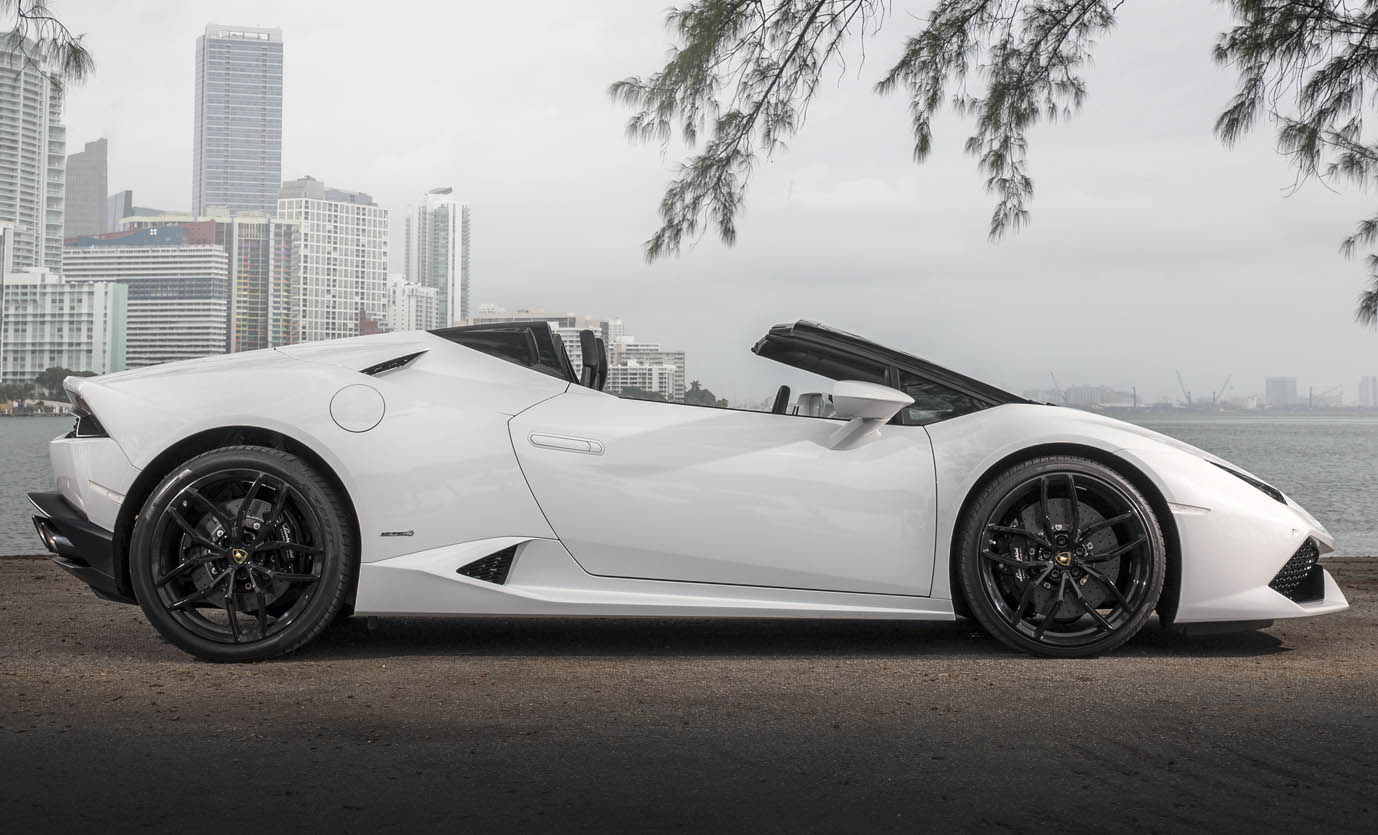 The new Lamborghini Huracan Spyder stands for inspiring technology, outstanding quality and breathtaking performance. Luxurious comfort with a pure and dynamic design ensures the convertible version of the Huracan is an iconic Lamborghini in its own right. Its lightweight, electrohydraulic soft top gives the new Lamborghini a distinctive presence with roof both open and closed, and maximum comfort for driver and passenger with uncompromising handling and performance.