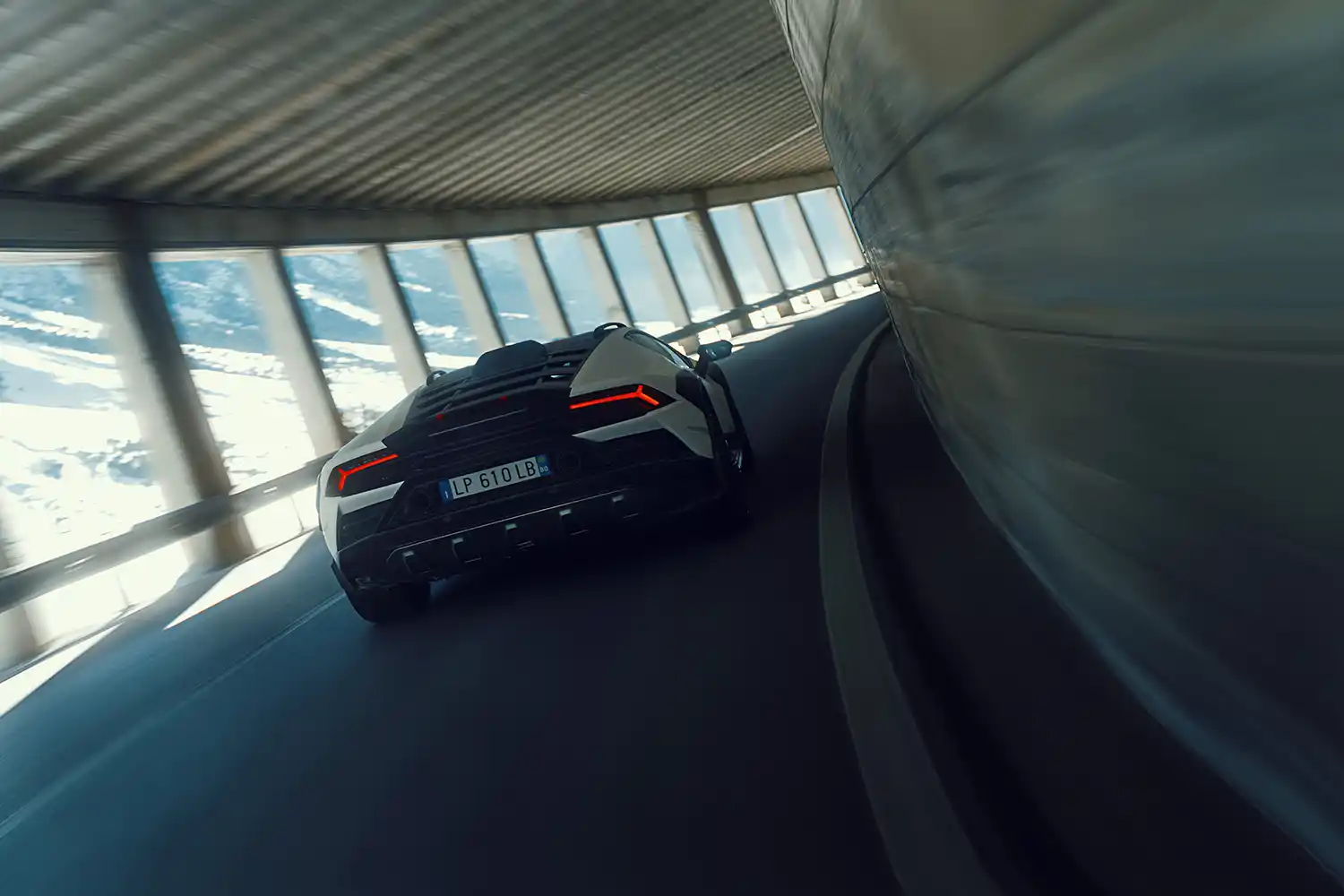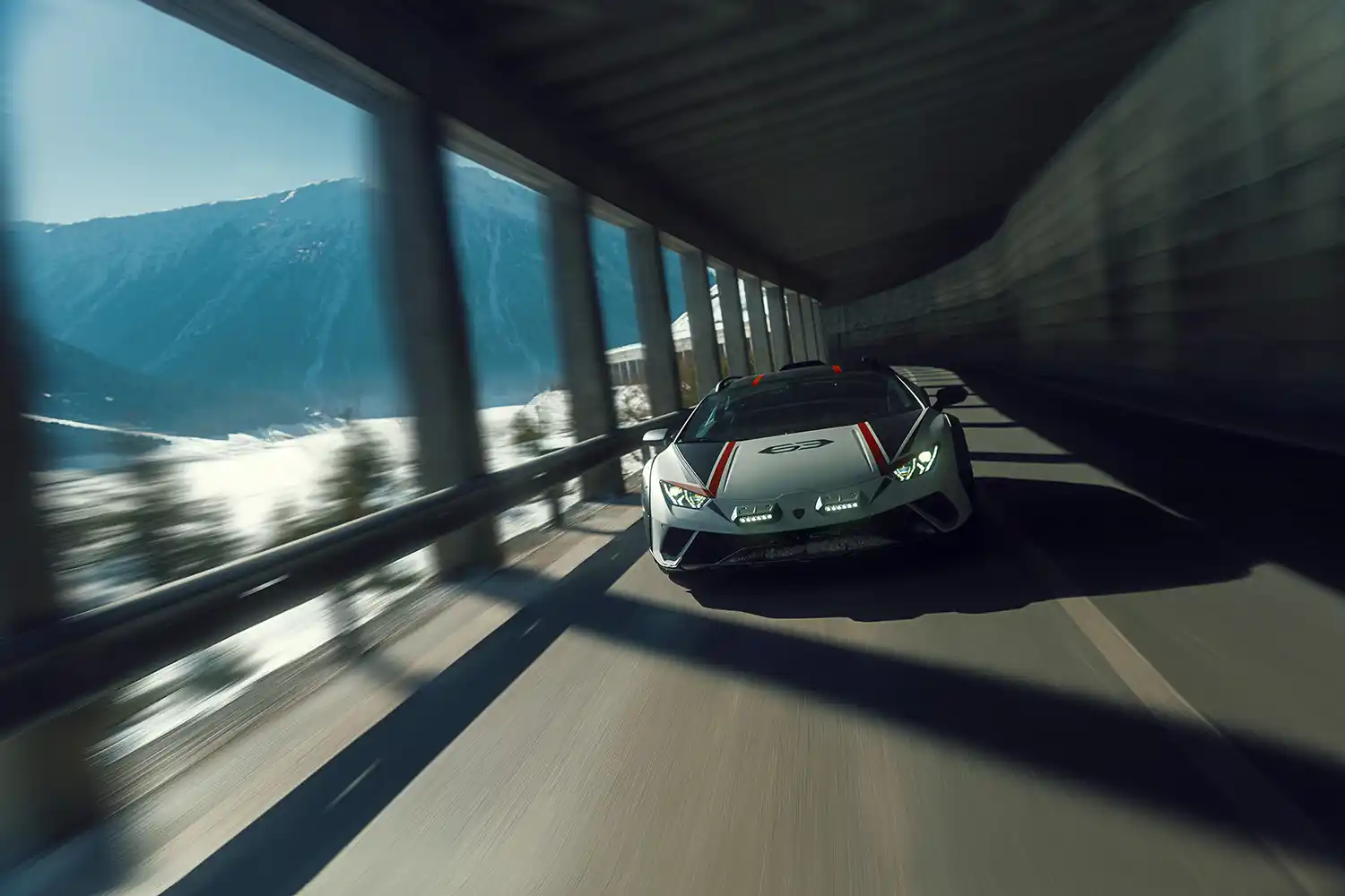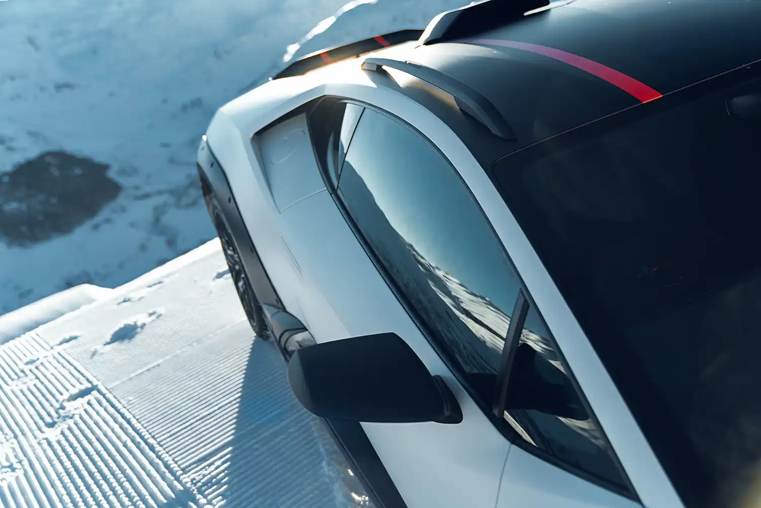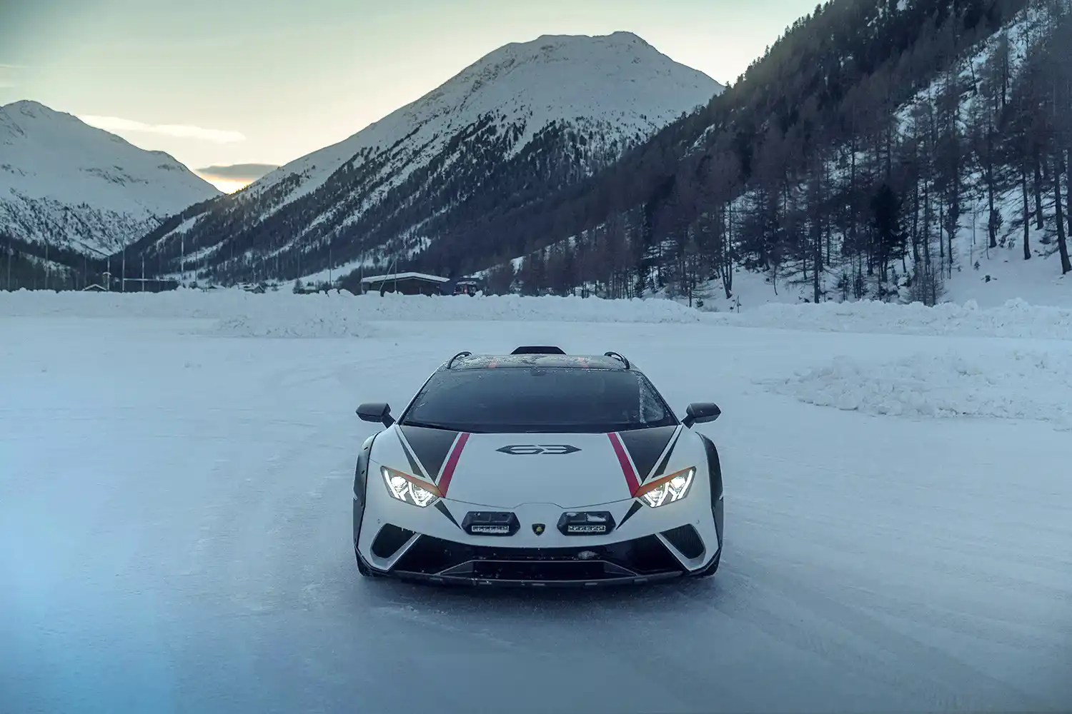 The Huracán Sterrato[1] arrived in an exclusive ski resort in the Italian Alps, proving its prowess on snow and ice. Switching from road-driving modes to its special ‘rally’ option, the set-up of the permanent four-wheel drive Huracán Sterrato conquered the low-grip surfaces of the winter destination with a dynamic flourish.