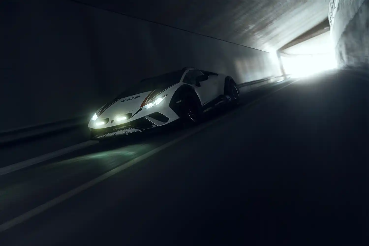 This car caught the attention of skiers and vacationers in its ice-cool winter whites of Bianco Phanes with details in Grigio Telesto and black carbon fiber including the reinforced wheel arches. Future owners of the Huracán Sterrato can also create their own unique sporty style from 350 external colours and more than 60 interior leather and Alcantara options through the Lamborghini Ad Personam personalization program.