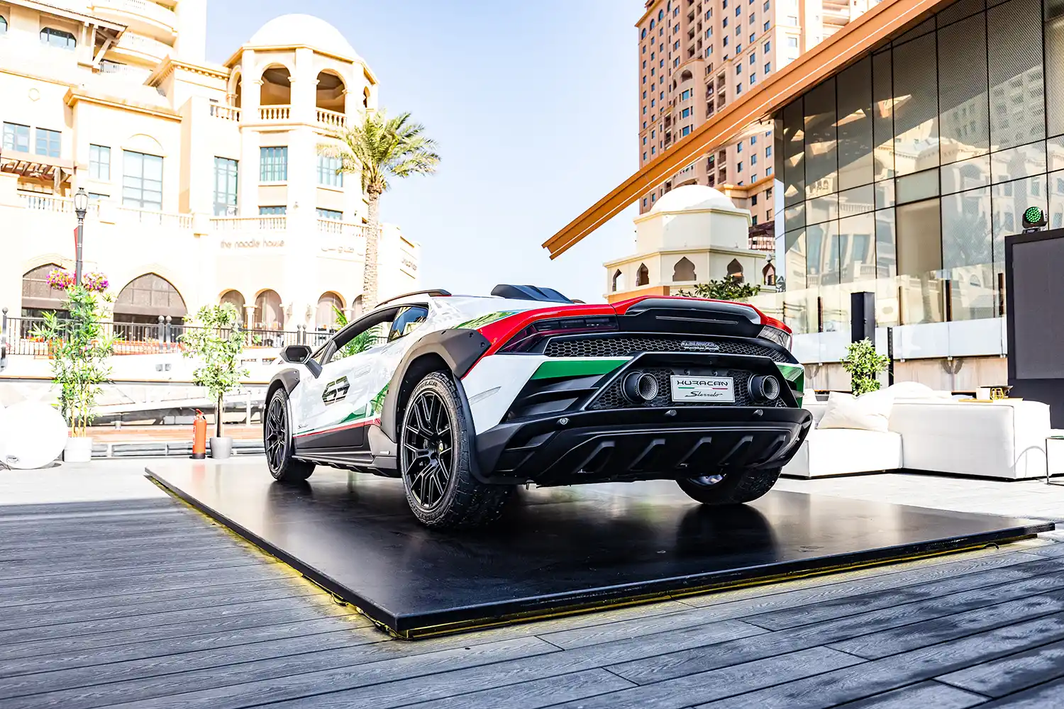Customers joining Lamborghini in its pop-up Lounge floating on a pontoon in Doha Bay, were also able to consult Lamborghini’s Ad Personam specialists to configure their new Sterrato, selecting from more than 350 exterior paints and finishes, 60 internal leathers and a host of other finishes and options for virtually unlimited personalization potential.