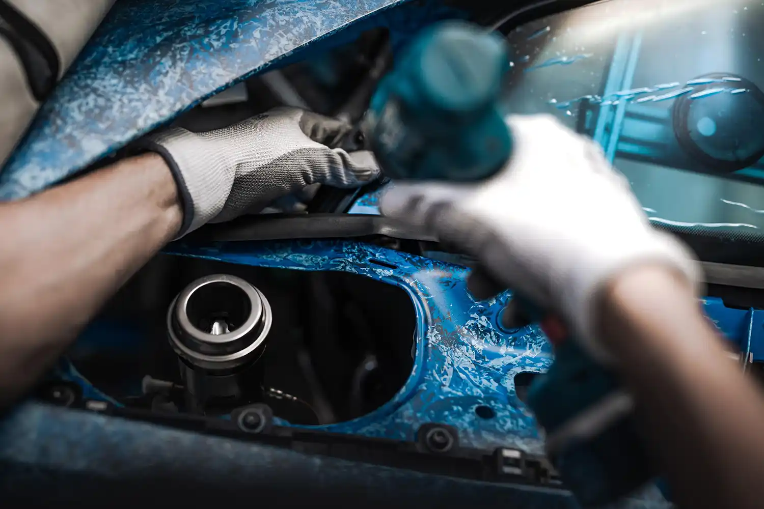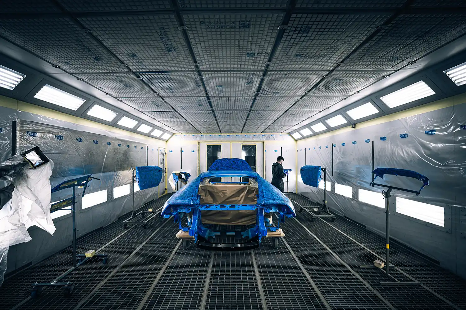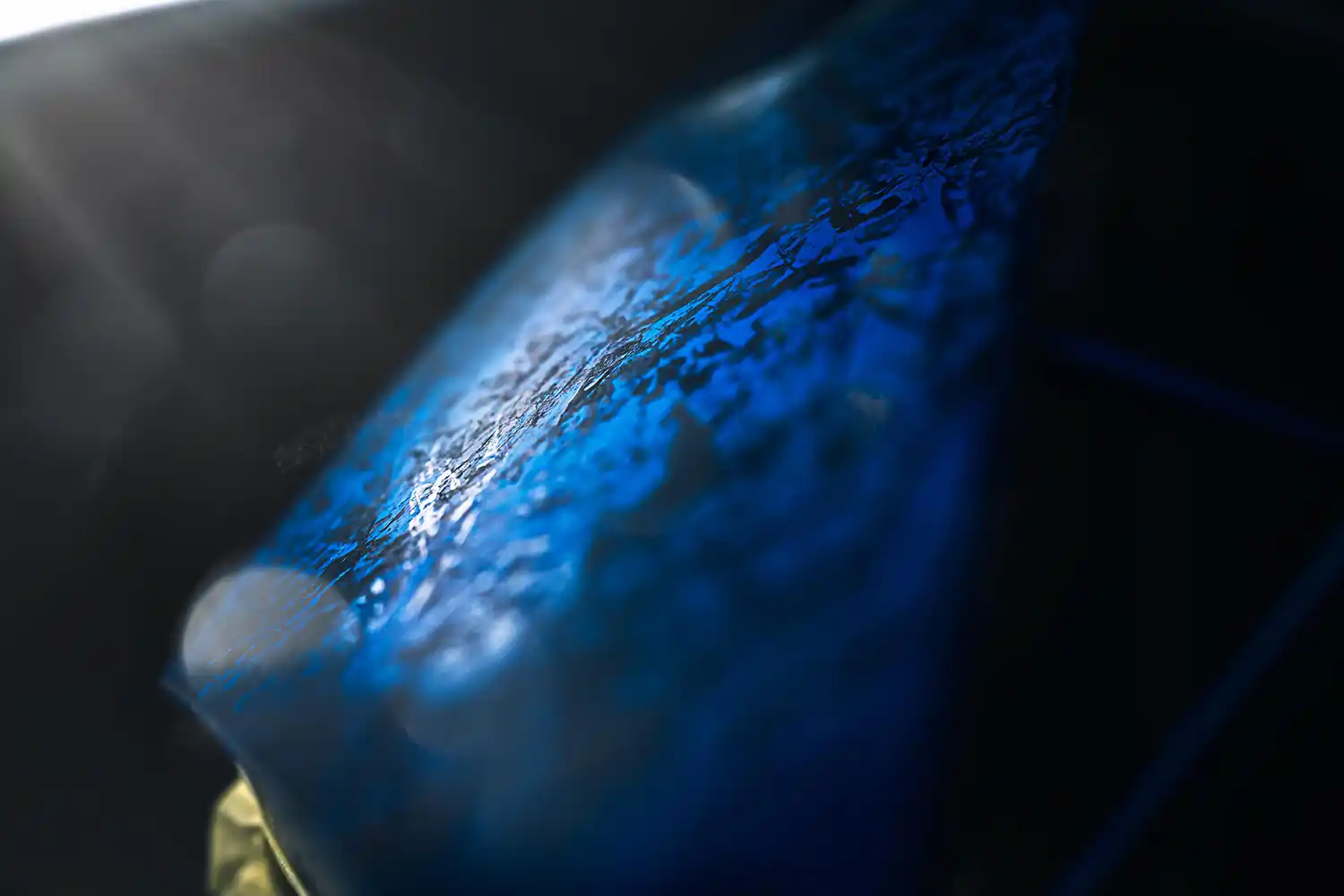 The Huracán Sterrato Opera Unica exudes the inimitable, brave character of the super sports car that perfectly tackles the paved and unpaved roads of the Costa Smeralda, while its unique, hand-painted exterior takes inspiration from the marine-blue landscapes and rich colors of Sardinia. The three-color hand-painted process creates the crystal effect of frozen liquid: Blu Amnis is used as the first solid paint color, and then etched into by hand with a second Blu Grifo paint and a third color Blu Fedra, in a process taking over 370 hours.