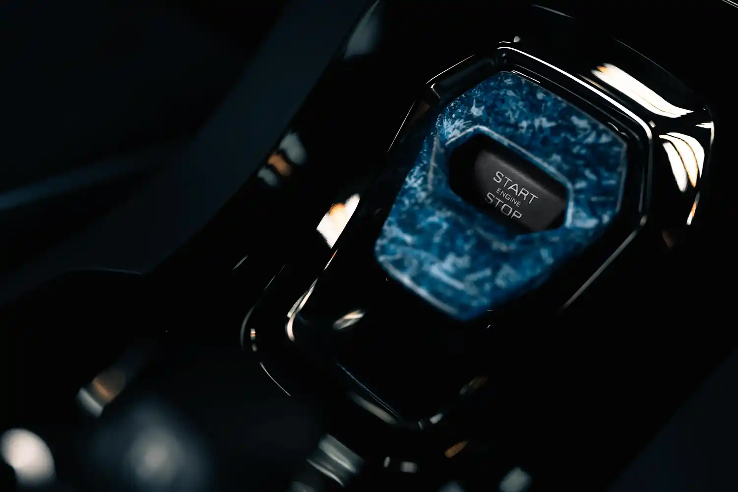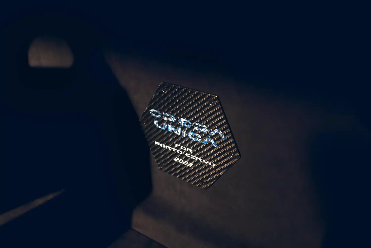 The exterior of the “Opera Unica” is finished in matt black paint, to the roof, sills and front-light casings, front and rear splitters and fenders. Its muscular, enhanced wheel-arch protection is also painted matt black, setting off Morus 19” matt black rims. Inside, the Opera Unica one-off is as unique as the exterior: featuring exposed carbon fiber, the sports seats, door panels and console are upholstered in Blu Delphinus leather; the dashboard in same-color specially-dyed Alcantara; and the steering-wheel combining the two materials. The lighter shade of Celeste Phoebe leather is used in complementary panels, piping, and embroidery including the Lamborghini logo, recalling the blue of the exterior and the ambience of a maritime lifestyle. A seat-panel graphic is lasered in silver, and even the cover to the start-stop button on the center console is finished in the crystal effect of the exterior paint. Like all Huracán Sterrato cars to be produced, the interior carries a special plate denoting it as one of 1499 in a limited series, as well as special plates celebrating ‘Opera Unica Porto Cervo 2023’, finished in the crystal effect paint, and Lamborghini’s 60th anniversary.