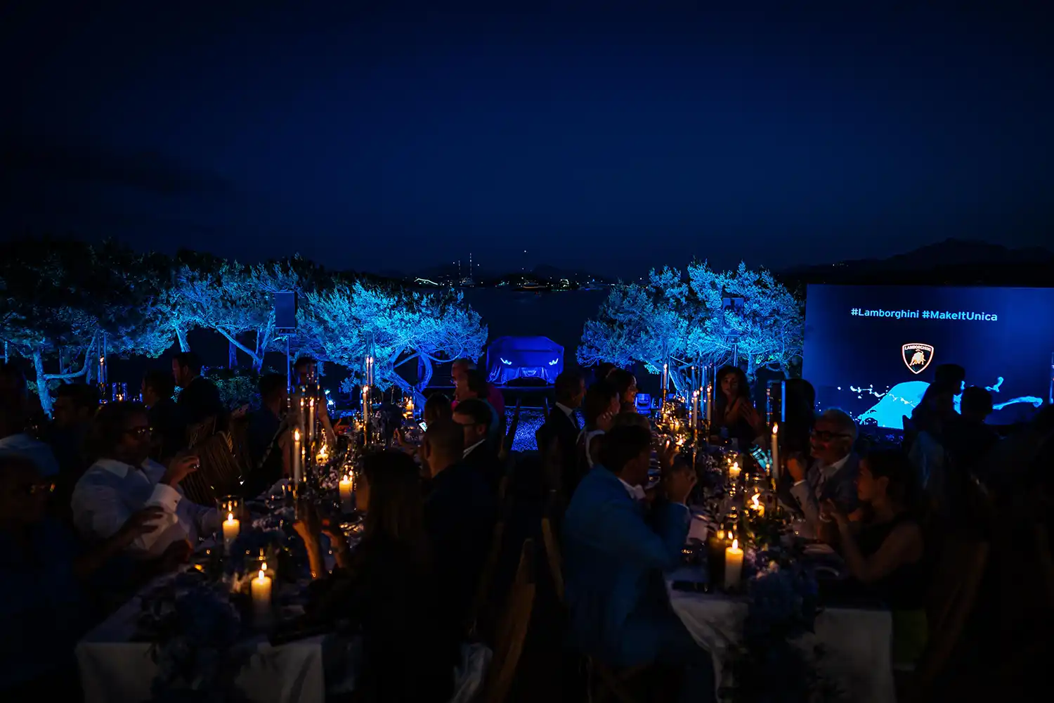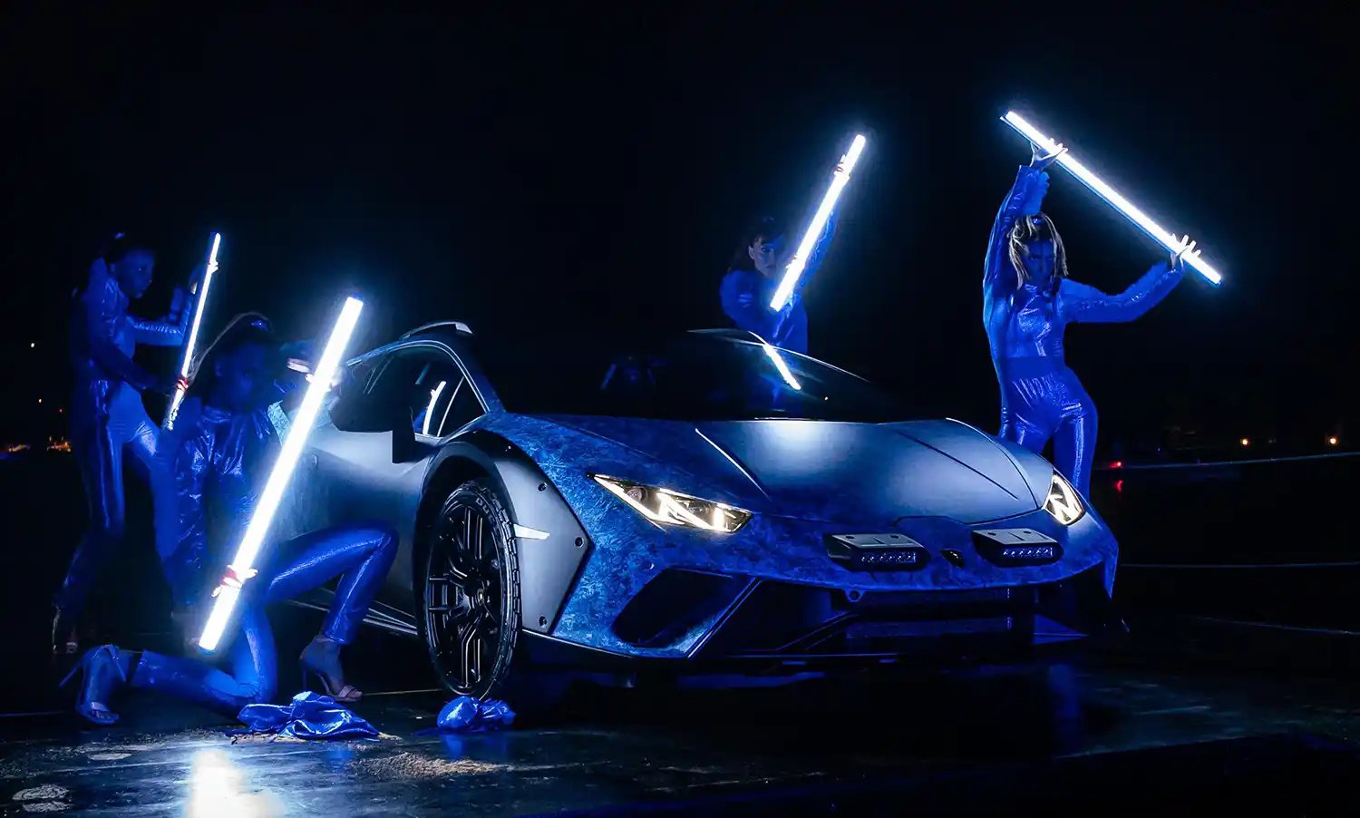 Unveiled at the Lamborghini VIP client dinner in Cala di Volpe hotel, the Huracán Sterrato Opera Unica’s arrival was a spectacular as its crystal-blue paint: the 120 guests dining on Matsuhisa Nobu- cuisine in a sea-blue themed environment, were surprised and enthralled by the car’s fitting unveil on the waterside venue on a floating platform, to be presented by Automobili Lamborghini Chairman and CEO Stephan Winkelmann. A crew of performers and dancers introduced the unveil moment of the Opera Unica done with a special video telling the creating process of the vehicle.