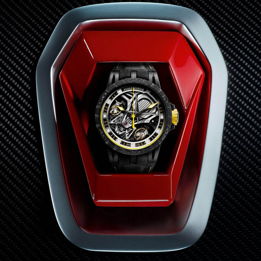 The two brands share the same values, such as the ongoing pursuit of excellence, the search for innovative materials, and obsessive attention to detail during the production of their precision instruments: namely Roger Dubuis watches and Lamborghini cars.