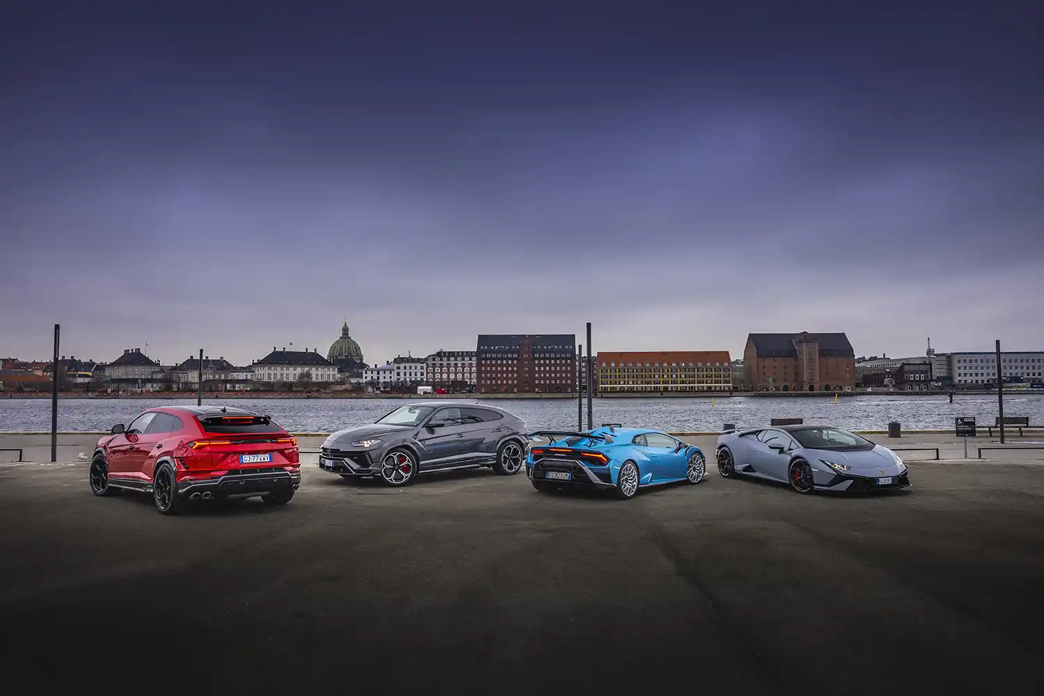 The following day, twelve Lamborghinis – Huracán STO, Huracán Tecnica, Urus S and Urus Performante – drove a circular route between Denmark and Sweden, starting from Copenhagen and heading to Frederiksborg Castle, continuing onwards to the north coast and then on to Helsingør.