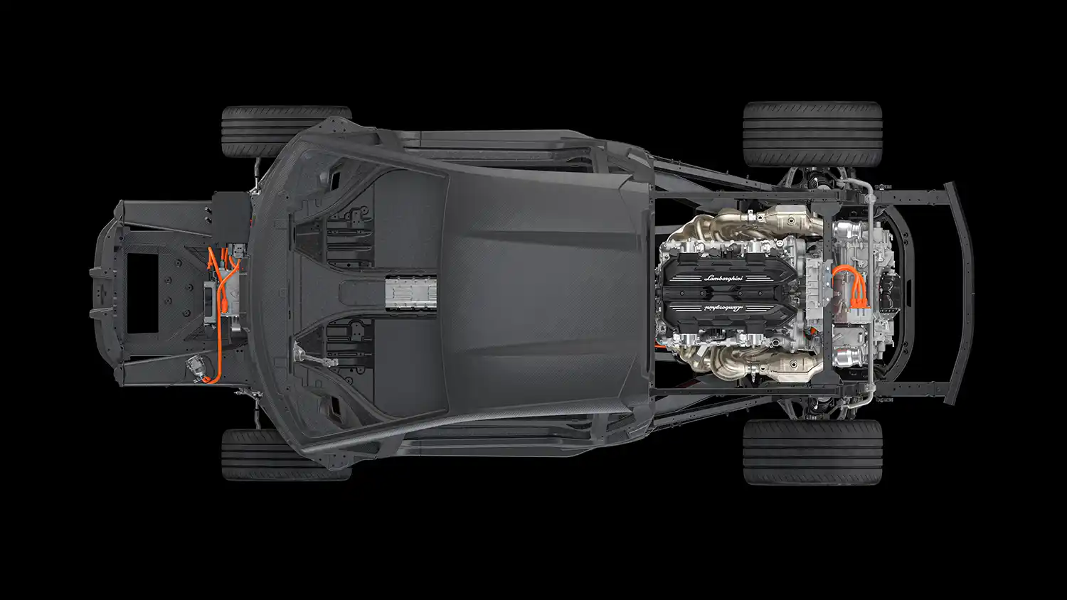 In fact, the LB744 monofuselage is 10% lighter than the Aventador chassis, and the front frame is 20% lighter than its aluminum predecessor. The torsional stiffness has also been improved with a value of 40,000 Nm/°, up +25% compared to the Aventador and guaranteeing best-in-class dynamic capabilities.