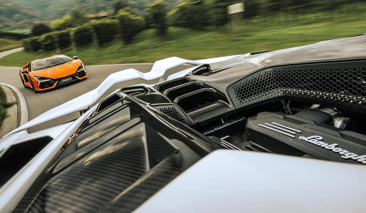 From now on Lamborghini will have two beating hearts: the overwhelming roar of the V12 and the innovative energy of its electric motors. For the first drive on the road and track Revuelto, born in Sant’Agata Bolognese, silently traveled the Bolognese streets of the city center, crossed the hills of Valdobbiadene, continued towards the sinuous mountain paths of Monte Grappa and finished its journey at the Piero Taruffi Vallelunga circuit, near Rome.