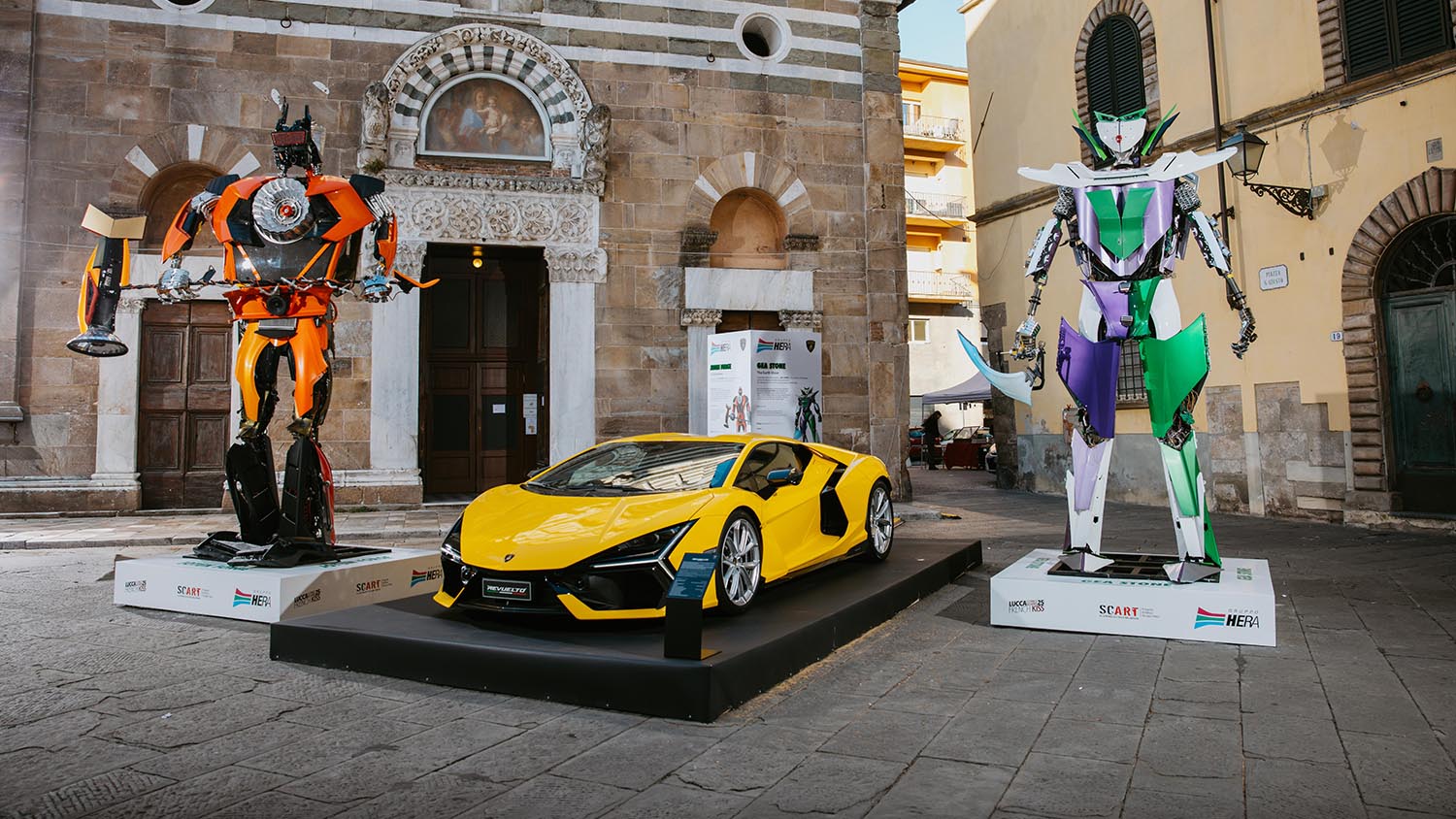 The project stems from a collaboration between Automobili Lamborghini and SCART, the artistic laboratory of the Hera Group. It brings six striking robots, each over four metres tall, to the heart of Lucca. Made entirely from waste materials sourced from Lamborghini’s Sant’Agata Bolognese production lines, these sculptures symbolize a fusion of creativity, responsibility, and innovation.