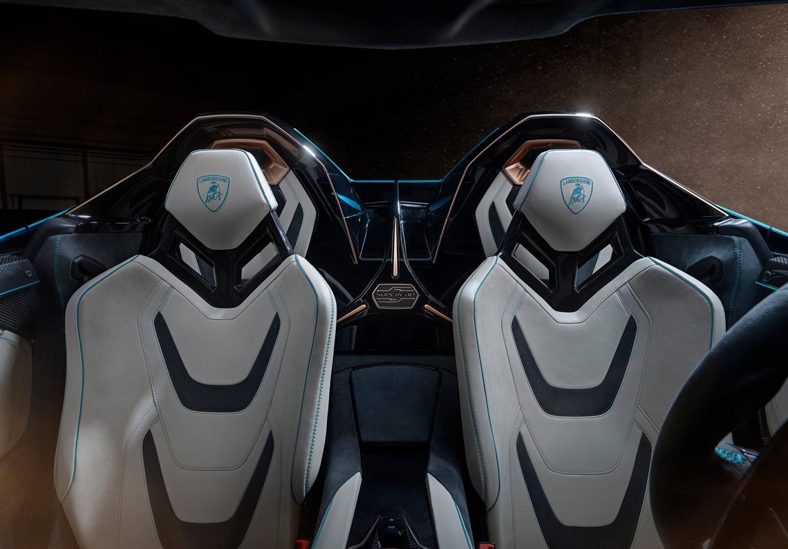 The extreme and strong rear of the car incorporates Lamborghini’s evocative hexagon design, including six hexagonal taillights inspired by the Countach. The rear wing is integrated within the profile and extends out only during the driving to enhance the performance.