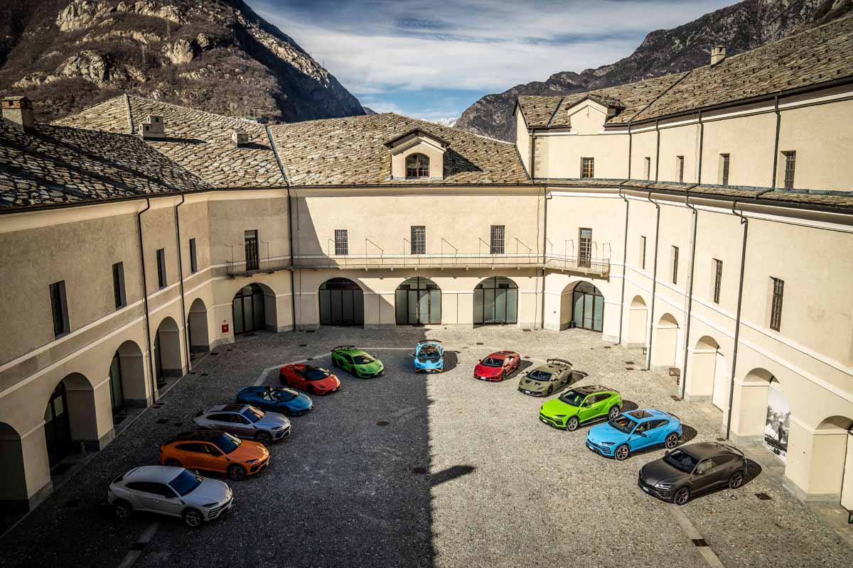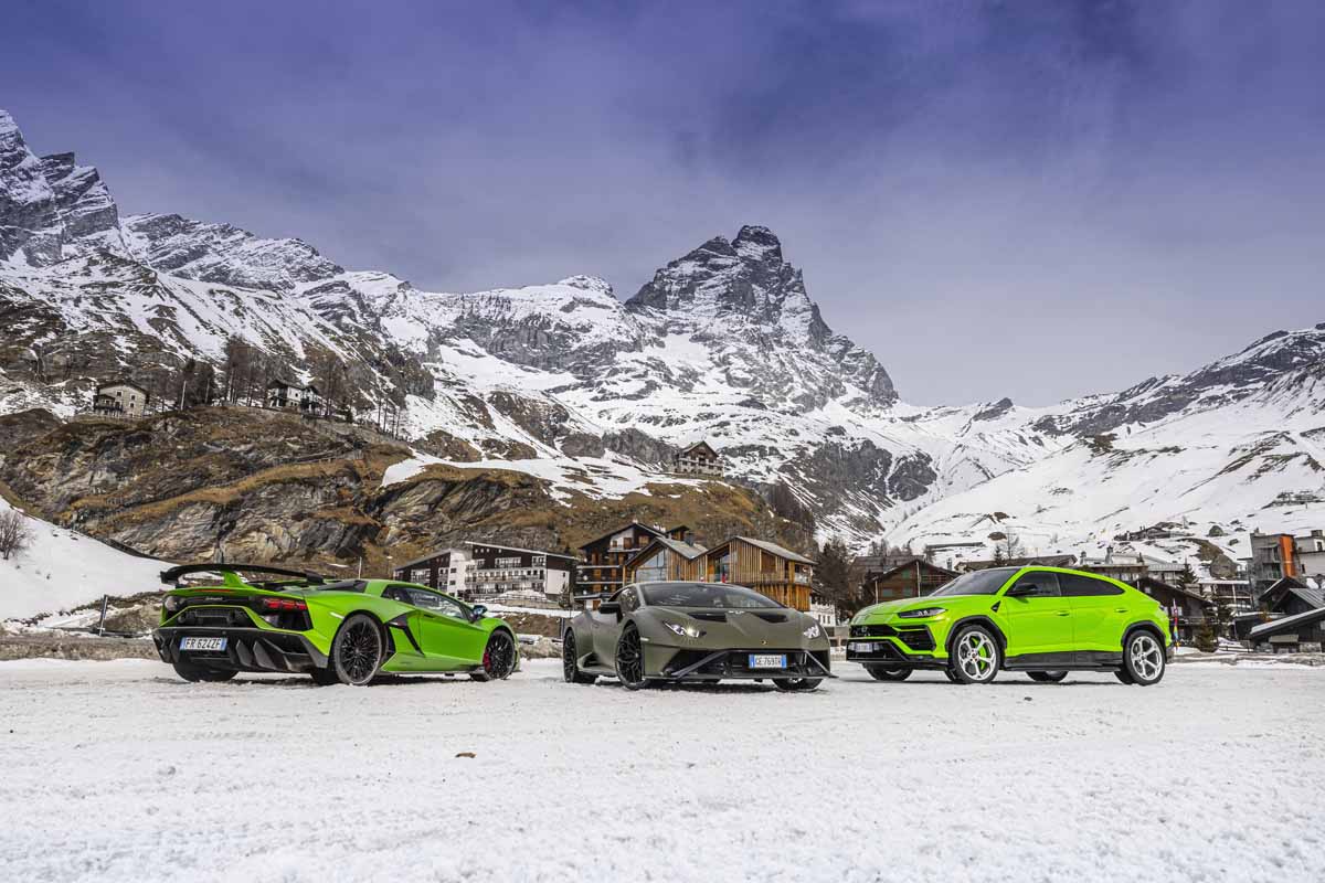 The full Lamborghini range took to the winter roads in Italy during a drive event from Sant’Agata Bolognese to the Cervino peaks.