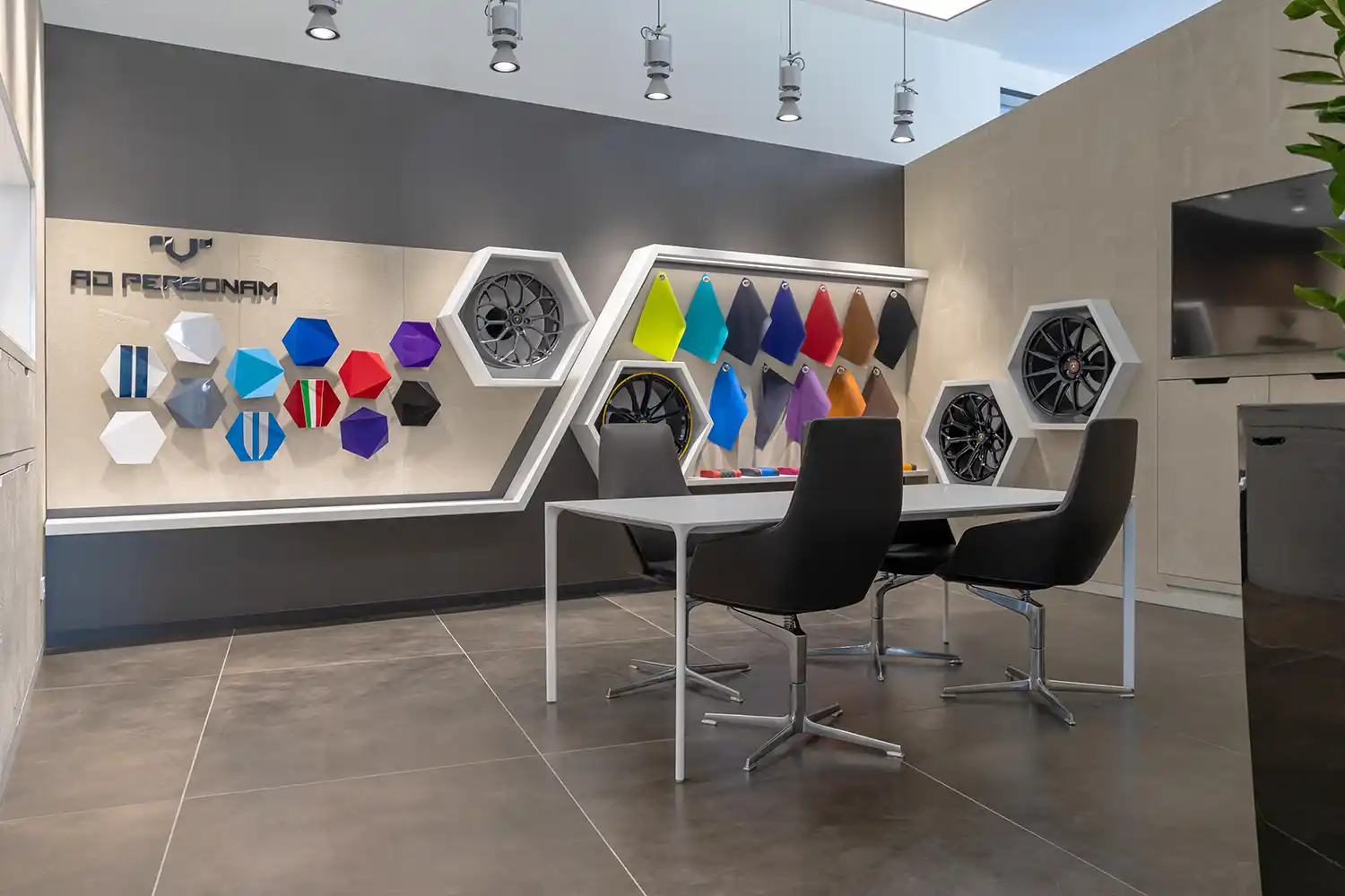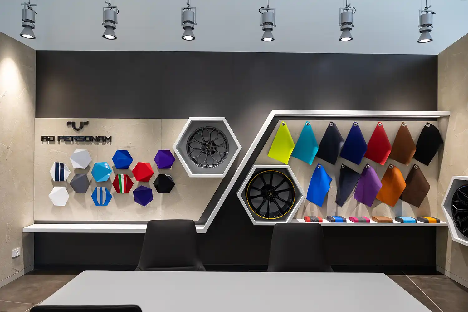 The new facility, comprising an aftersales area and a showroom of around 400 m2 on Via Gardesane, fully embodies the company’s philosophy. The facility includes a waiting room looking out over the showroom and a studio dedicated to the world of Ad Personam: here, clients can choose from an almost infinite number of colors and finishes to customize their new Lamborghini.