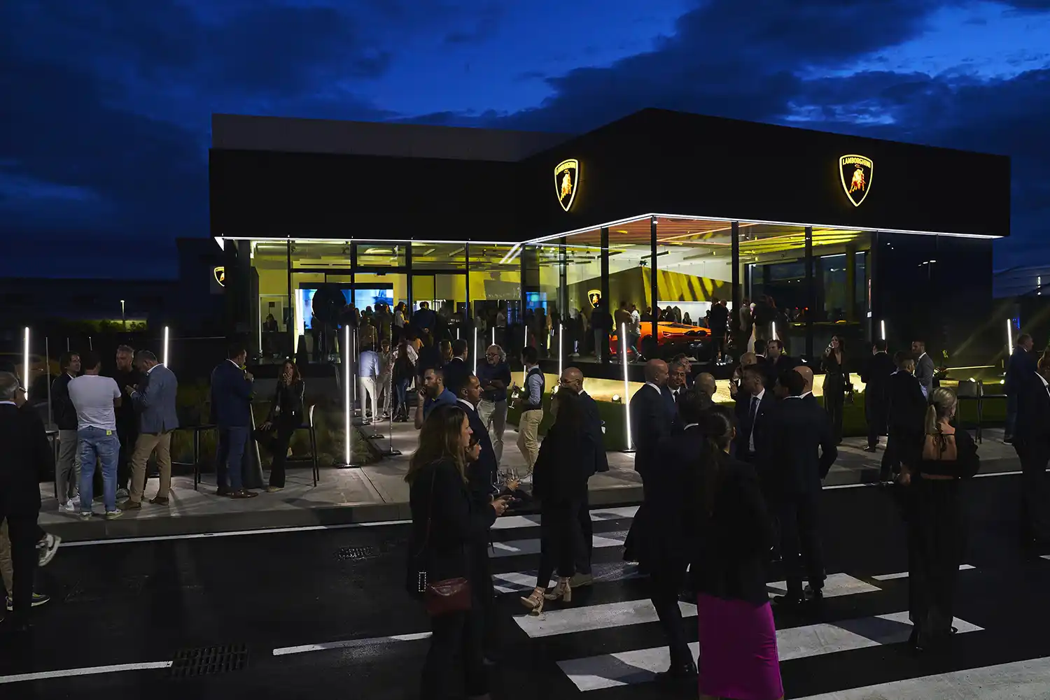 Around 300 guests, as well as the Eurocar board and Automobili Lamborghini senior management attended the opening event, with the presentation of an exclusive artwork by artist Nicola Evangelisti. The work – a luminescent painting on canvas depicting the image of a bull – is one of 180 artworks commissioned by Lamborghini dealers around the world as part of the 60th anniversary celebrations of the Sant’Agata Bolognese company.