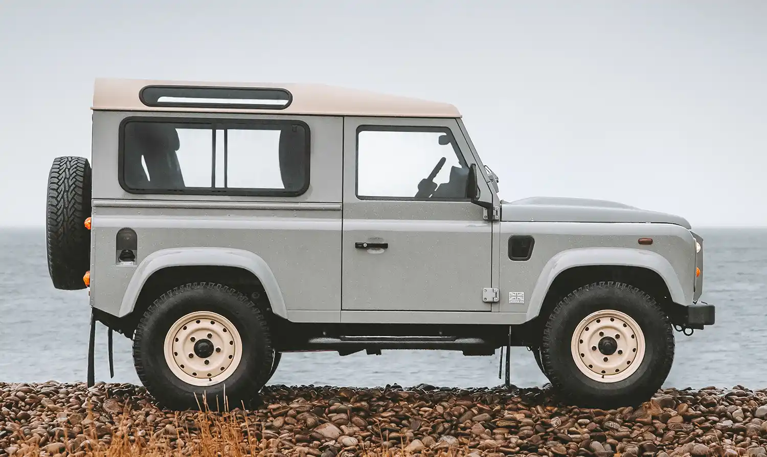 The Classic Defender Works V8 Islay Edition is finished in Heritage Grey – informed by the Mid Grey paint of Wilks’ original vehicle – with a contrast roof and heavy-duty steel wheels finished in Limestone. The wheelarches are also finished in Heritage Grey for an even more refined exterior design.