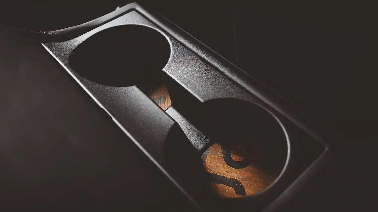 Each tray features a unique 110mm wooden disc replicating the end of a whisky barrel and is made from a specific piece of the wood that displays the authentic stencilled lettering, meaning every vehicle is a one of a kind. The disc is set into the tray, which is finished in American Walnut wood veneer to complement the whisky barrel oak, with beautiful dovetail joints for an exquisite finish. The specially crafted surround showcases the distillery and Woollen Mill in the same stencilled font, just like a genuine whisky barrel – and includes the official Land Rover 75th anniversary logo. The base of each cup holder is also made from the whisky barrel wood.