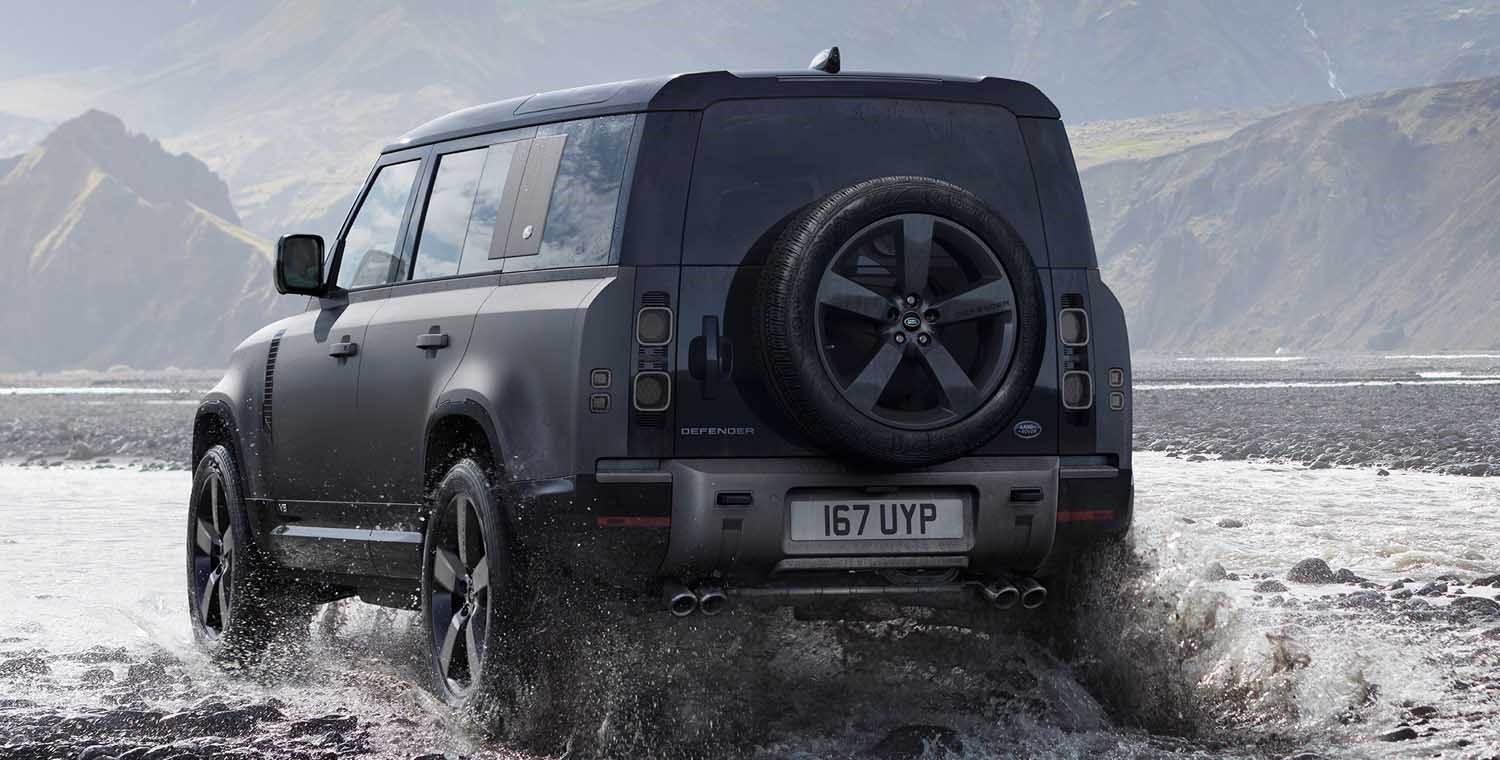 Instantly recognisable, the Defender V8 features a number of unique exterior enhancements; bespoke exterior badging, quad exhausts with distinctive tailpipes and unique 22-inch alloy wheels with a Satin Dark Grey finish combine to set the most powerful model in the line-up apart. The Defender V8 is further identified by its Xenon Blue brake calipers and 20-inch brake discs.