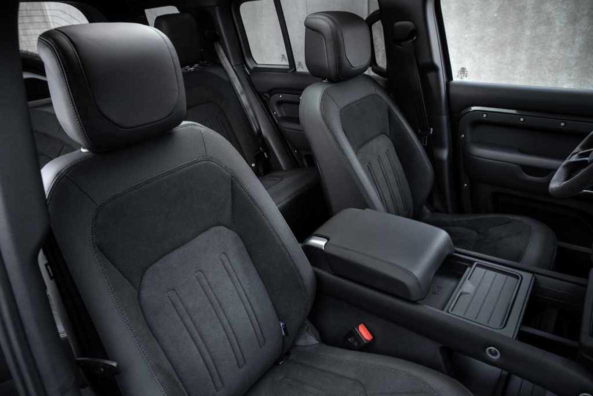 Inside, Defender V8 features seats trimmed in unique Ebony Windsor Leather with Miko Suedecloth and Robustec accents, each finished with a unique Ebony tag, while the Defender’s exposed Cross Car Beam has a special Satin Black finish. The four-spoke steering wheel is enhanced by an Alcantara rim and tactile satin chrome gearshift paddles, which are unique to V8 models. Leather covers the airbag housing and gear lever, while illuminated treadplates are completed with a V8 script.