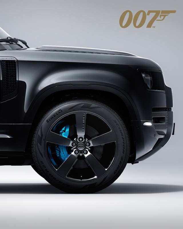 Available to order as a Defender 110 or 90 and inspired by the specification of the Defenders that appear in No Time To Die, the stealthy Defender V8 Bond Edition features an Extended Black Pack with 22-inch Luna Gloss Black alloy wheels, signature Xenon Blue front brake calipers and a ‘Defender 007’ rear badge.