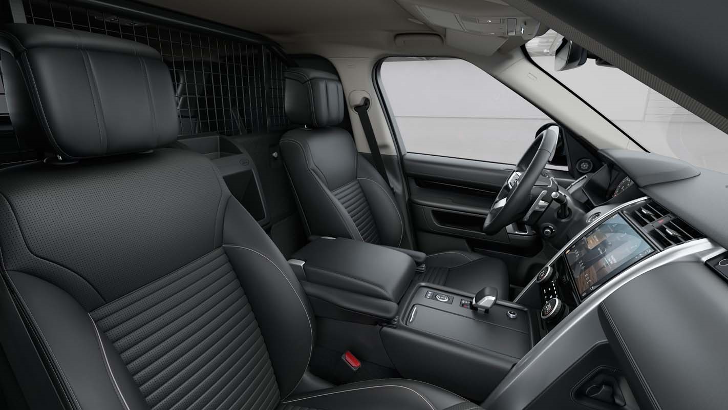 Practicality is paramount for Discovery Commercial, with its versatile load area featuring a flat heavy-duty rubber loadspace floor and fixed partition, two underfloor stowage areas, six load securing loops, high-sided cabin mats and useful hooks for added convenience. The 2,024-litre3 loadspace is illuminated by additional headliner lights and can accommodate a maximum load length of 1,638mm.