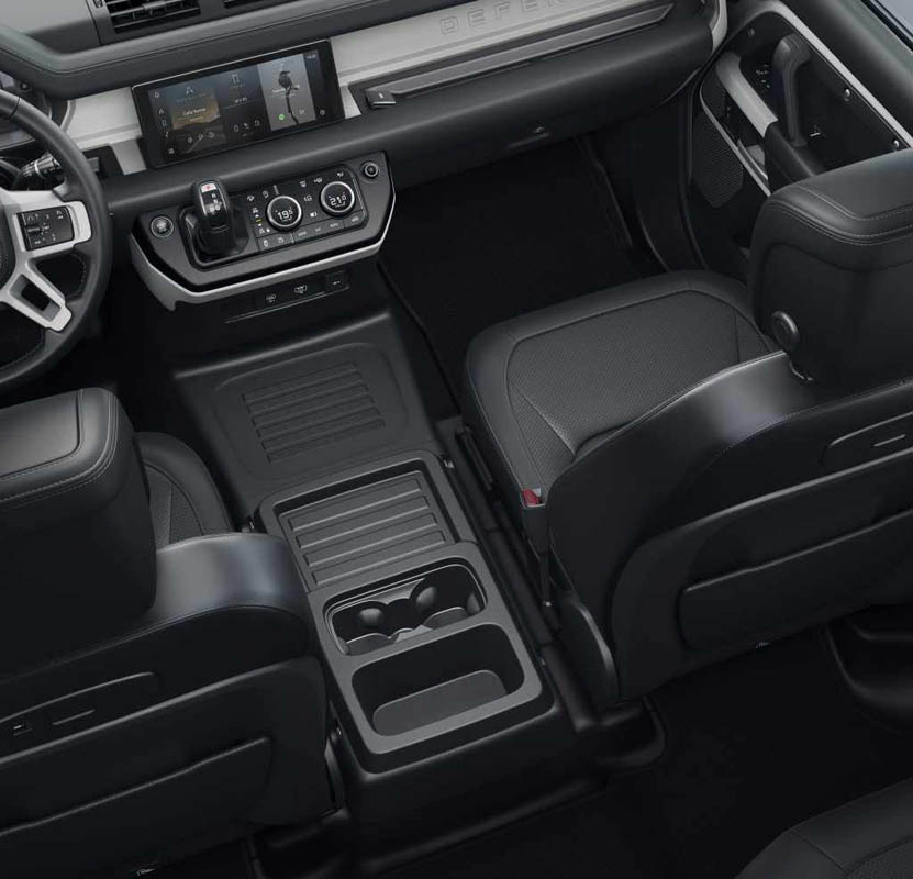 Practicality is a hallmark of Land Rover interior design and the new Defender comes with an abundance of storage opportunities including a choice of high and low centre consoles.