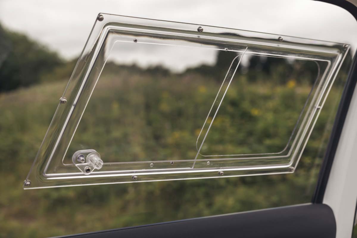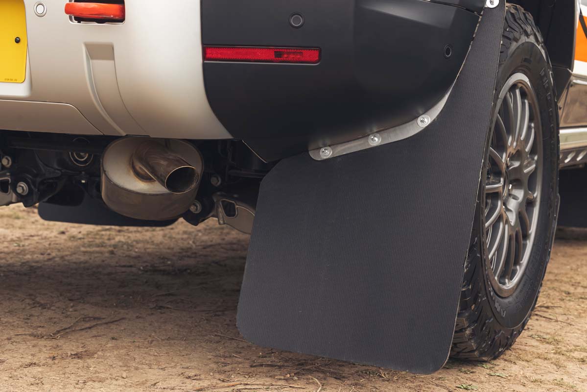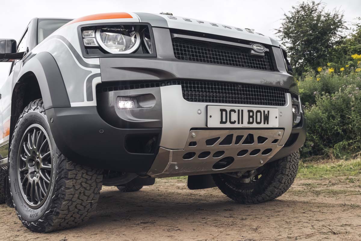 Each Bowler Defender Challenge is completely stripped back to install a full FIA-standard roll cage. The front and rear subframes are modified and given additional bracing for a new bespoke performance suspension set-up. Designed in collaboration with Fox, it increases the ride height by 25mm. This purposeful stance is enhanced by new Bowler rally-spec 18-inch wheels.
