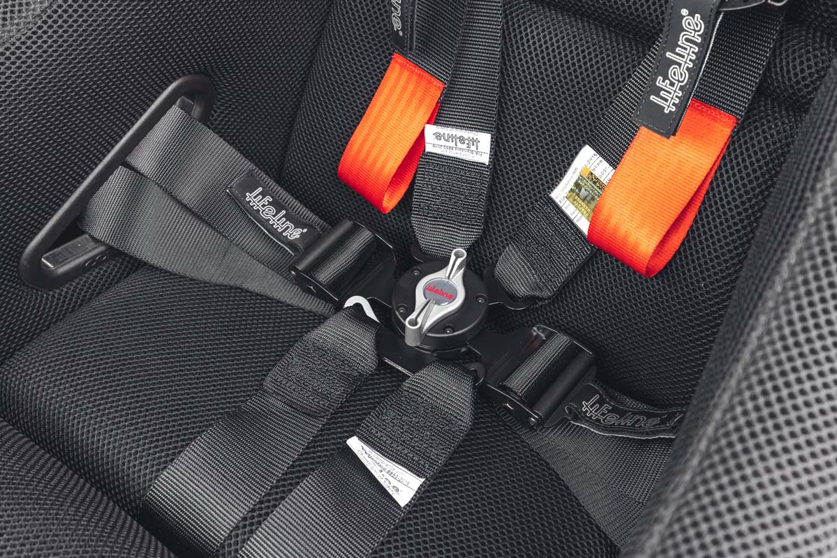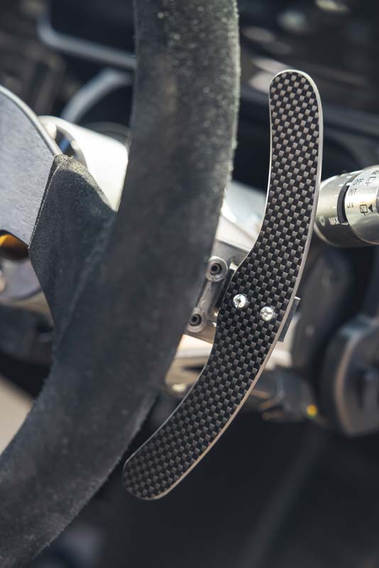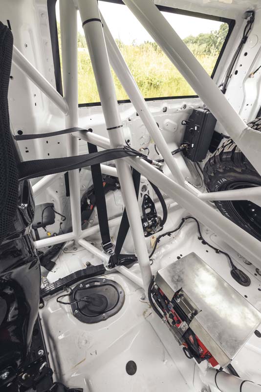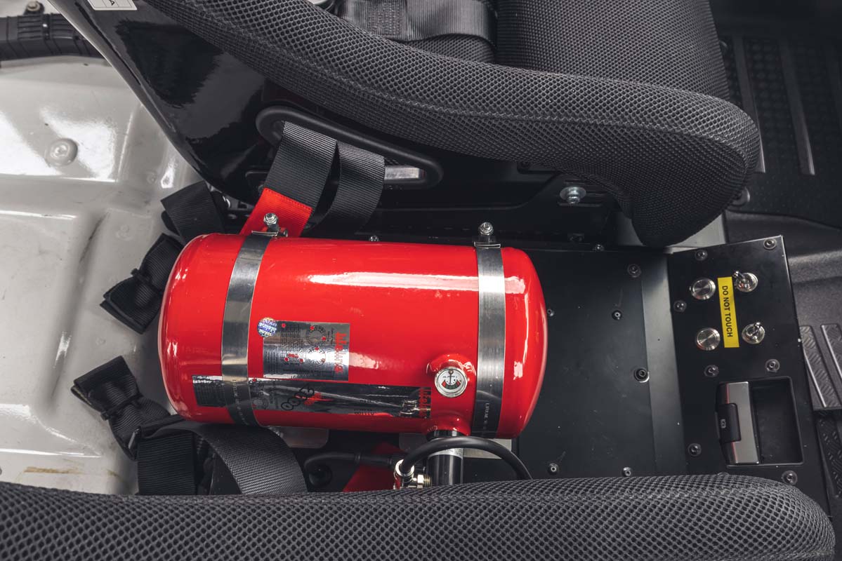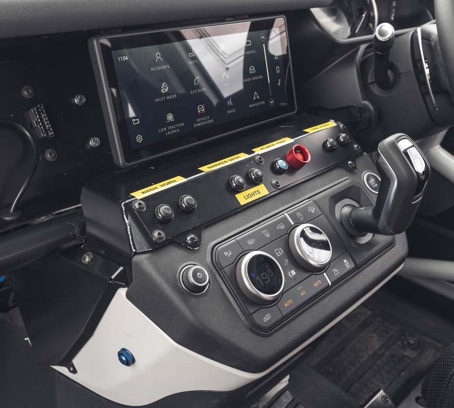 Bowler’s engineers have provided a suite of electronic components, from fire protection and electrical cut-offs to additional lighting and vehicle control systems – all fully integrated into the existing electrical architecture. Competition race seats are installed and the gear selector is repositioned for the optimal racing position. Bowler-developed column-mounted paddle shifts complete the transition.