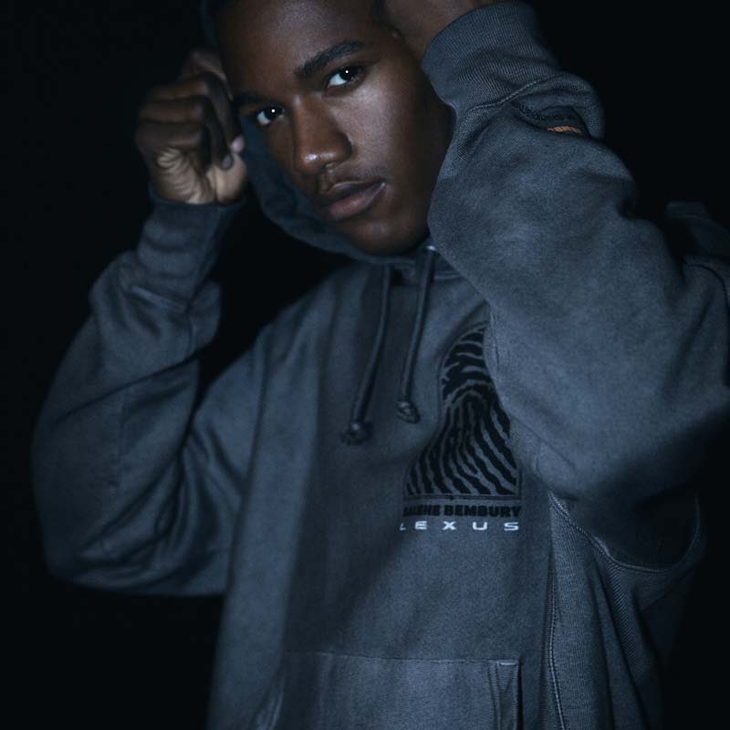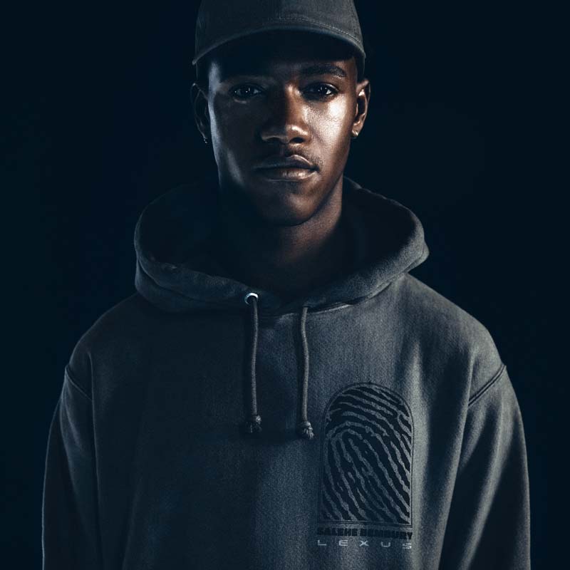 The Lexus x Salehe Bembury collection includes three unisex items: a hoodie, T-shirt and hat. The designs themselves were created by merging recognizable elements of Bembury’s body of work, such as his logo and signature fingerprint, with graphic elements derived from the Lexus brand and its NX vehicle. As an emblem of a fresh and forward-thinking approach, the collaboration reimagines Lexus’ iconic logo, distilling Lexus’ human-centric design into an apparel collection.