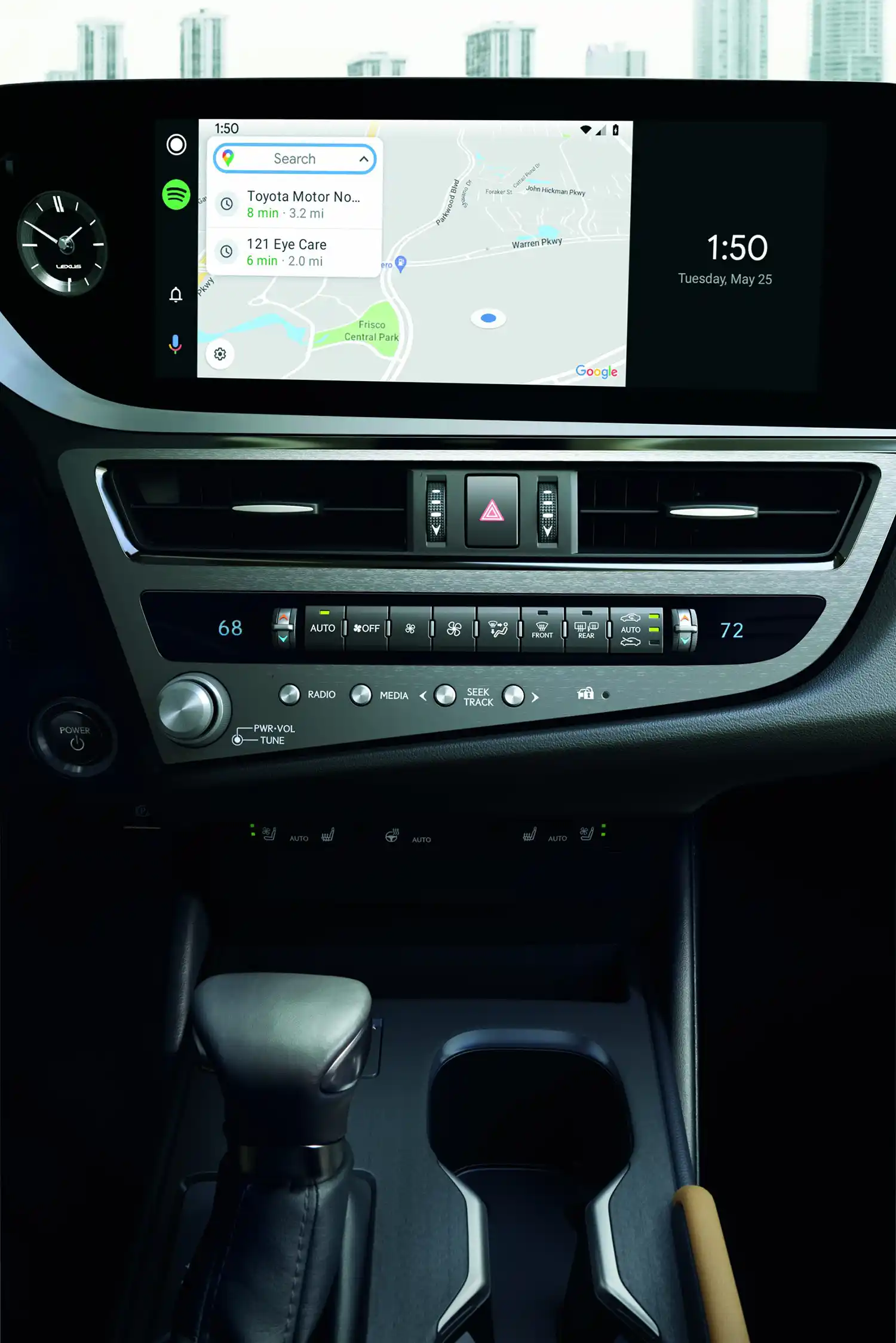Lexus Interface also allows for dual Bluetooth® phone connectivity, with support for standard wireless Apple CarPlay® integration and Android Auto™ compatibility. With further connectivity, the ES has a standard Wi-Fi Connect3 one-month trial with 4G availability for up to five devices – turning the vehicle into an AT&T Hotspot. Adding to the already robust offering of audio playback ability with HD Radio®, USB data and a SiriusXM® Platinum Plan 3-month trial subscription, the Integrated Streaming3 feature provides customers the ability to link their separate Apple Music® and Amazon Music subscriptions to the vehicle for onboard control.