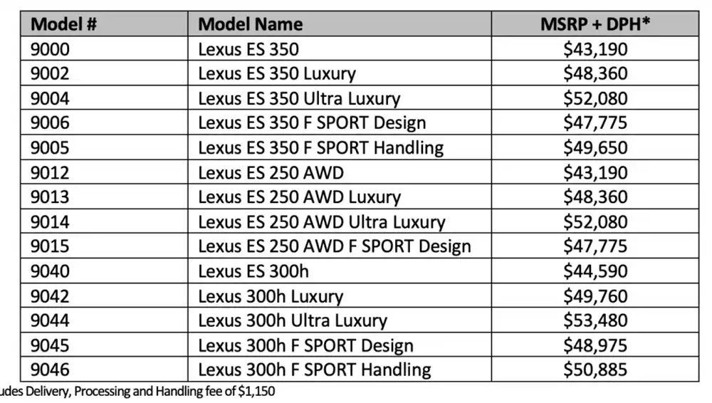 The top-selling sedan in the Lexus lineup, the ES sees minor changes for the 2024 model year, including a new available Technology Package and 18-inch wheels with Vapor Chrome finish that come standard for the Ultra Luxury grade. The 2024 ES continues to cater to a diversity of lifestyles with three available powerful engines, all-wheel drive capability and two F SPORT models.