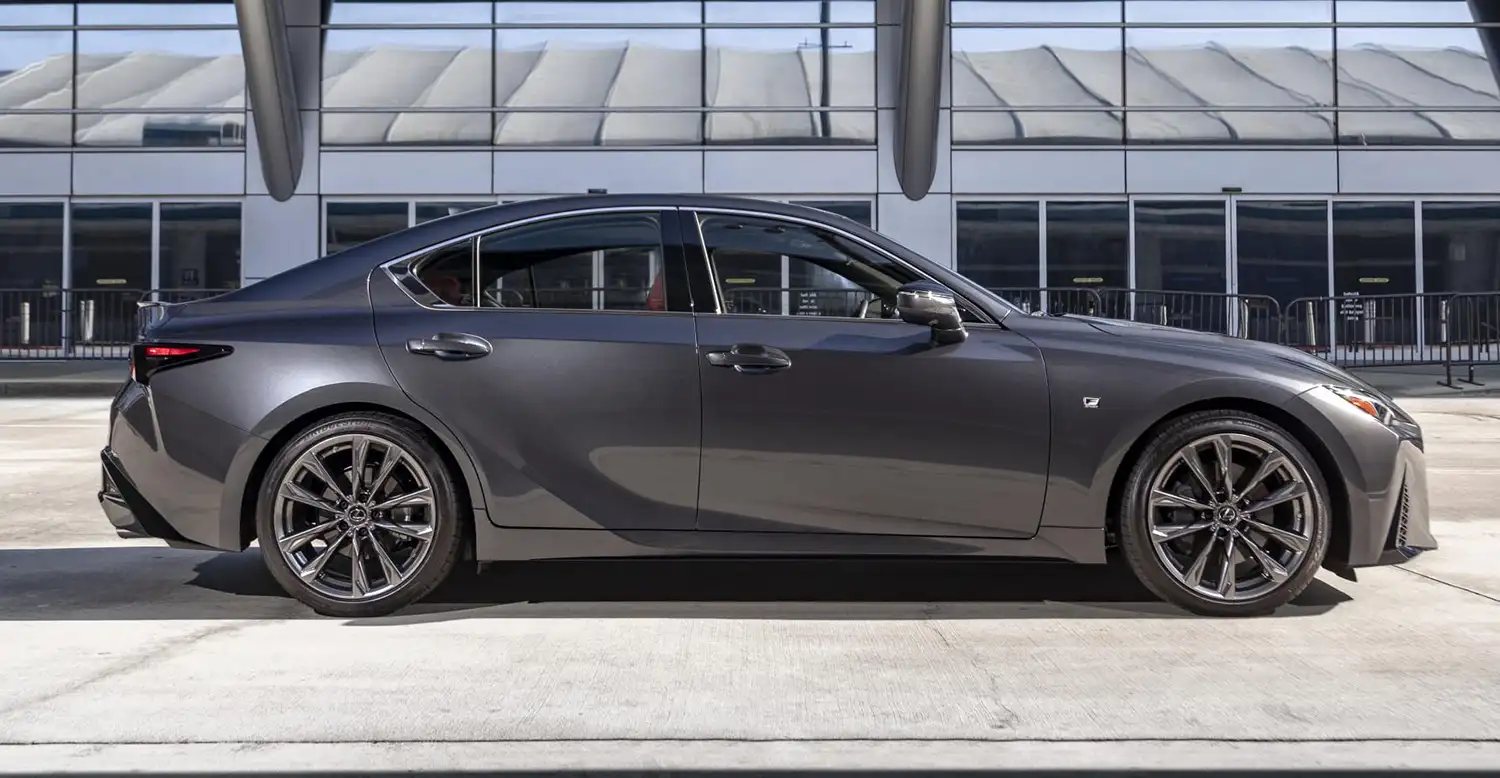 For 2024, the IS F SPORT lineup was restructured to now being offered on IS 300 models. All F SPORT models feature a host of visual and performance cues that immediately set it apart, including a unique front bumper with functional aerodynamic enhancements, rear bumper, grille surround, rear lip spoiler, rocker molding and more. Furthermore, F SPORT models have unique F SPORT 19-inch wheels as well as F SPORT badges that adorn the sides of the vehicles.