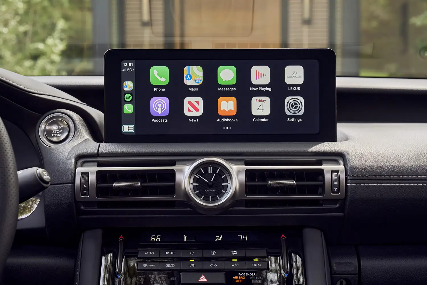 The IS features a standard 8-inch touchscreen for easy access to the controls. An expansive 10.3-inch touchscreen is available on vehicles equipped with navigation or the Mark Levinson® Premium Audio Package. The multimedia system features Apple CarPlay® integration and Android Auto™ compatibility.