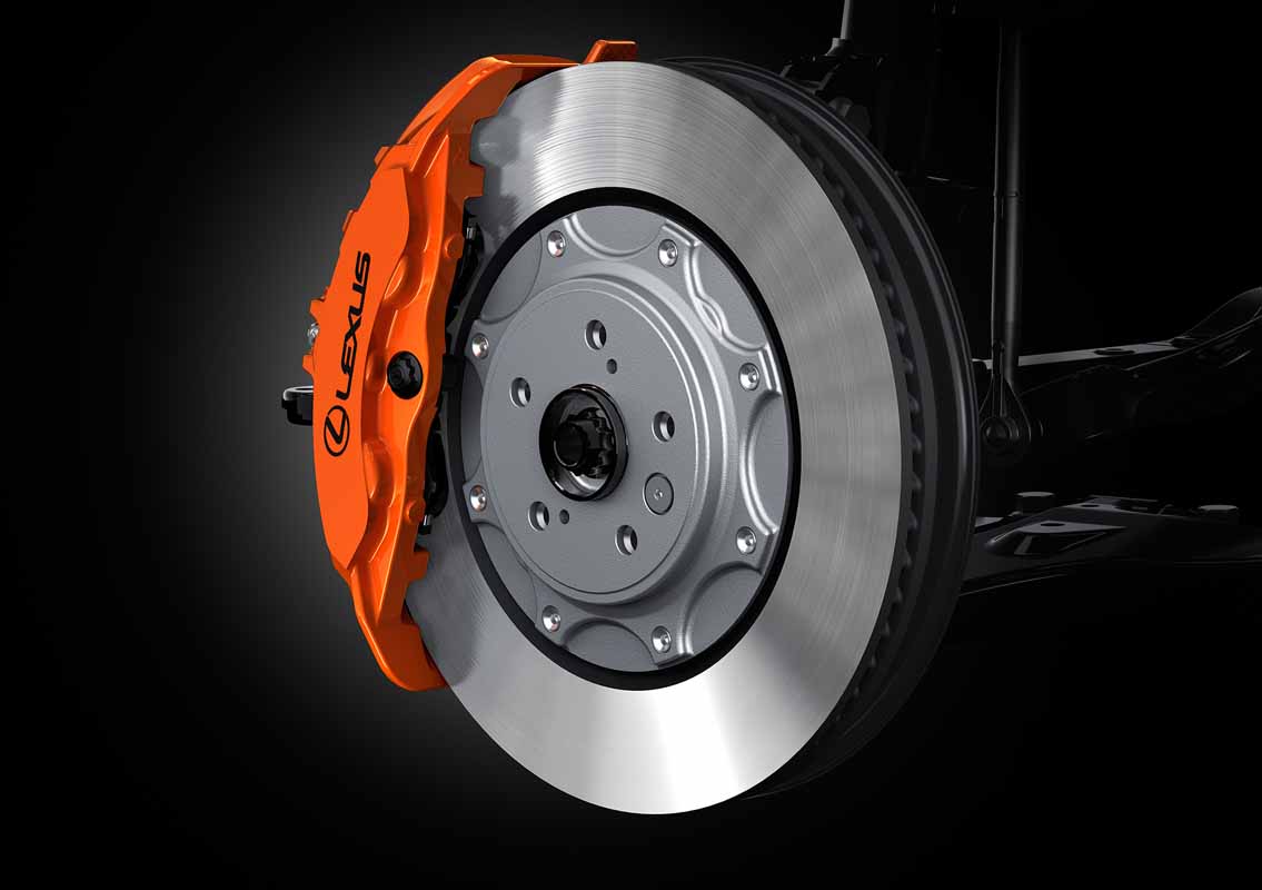 Because this is a high-performance hybrid, Lexus fitted opposed callipers to the front brakes to realise a powerful braking and Dynamic Rear Steering (DRS) that determines the optimum steering angle for the rear wheels.