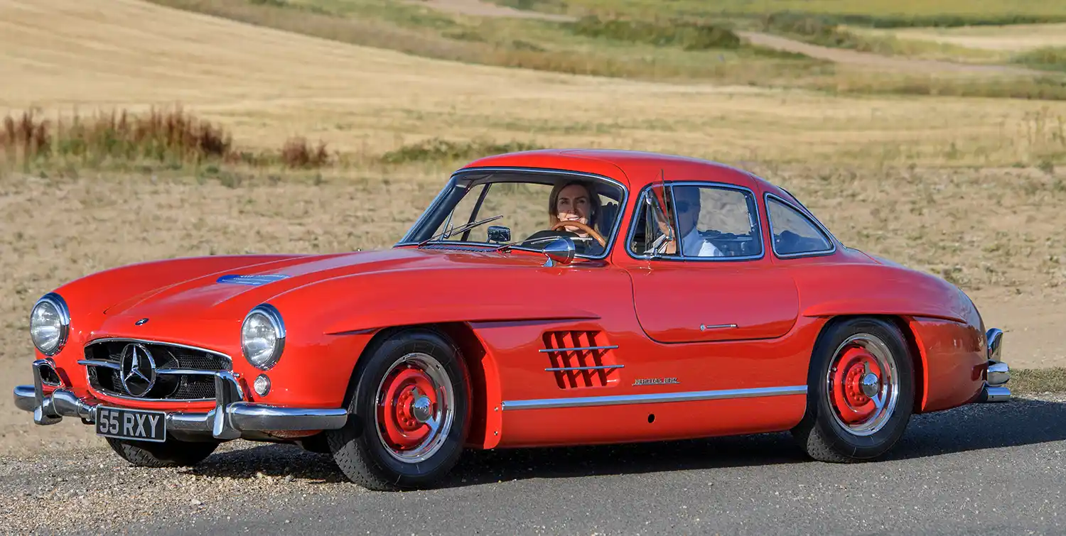 Joining these British legends will be one of Germany’s towering automotive achievements, the Mercedes-Benz 300SL Gullwing. First revealed in 1954 at the International Motor Sports Show in New York, the 300SL was derived from Mercedes’ prodigiously successful W194 race car and instantly hailed as a masterpiece. It went on to prove hugely influential on account of its lightweight tubular-frame construction, groundbreaking petrol engine with direct fuel injection and, of course, the extraordinary gullwing doors. There was, literally, nothing else quite like it, and its pedigree was enhanced further by an output of 212bhp, which provided a top speed of 155mph, making it the fastest production car of the mid-Fifties.