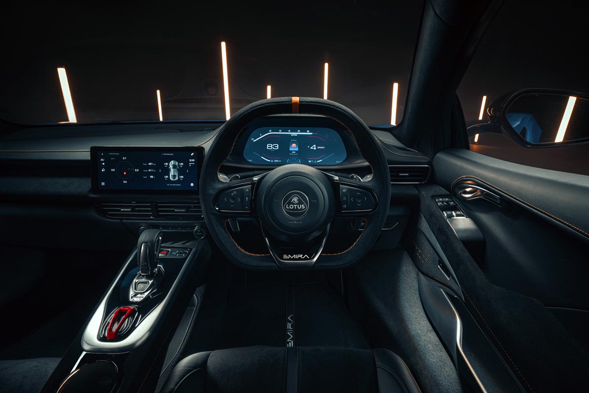 Lotus car interiors have always been famed for putting the driver at the very centre of the experience, with pure ergonomic design and instruments carefully placed for the most intuitive use. The Emira follows these principles to the letter to create a modern cockpit environment with the essential controls to hand and minimum distraction.