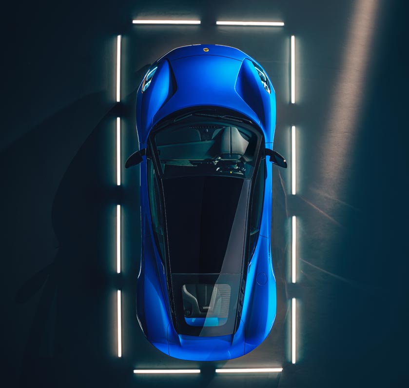Vertical all-LED headlamps are standard across the range, with a wing-inspired twin blade design also familiar from the Lotus hypercar. The bonnet houses the current iteration of the iconic Lotus roundel, its first appearance on a new Lotus sports car and slightly larger than on previous models.