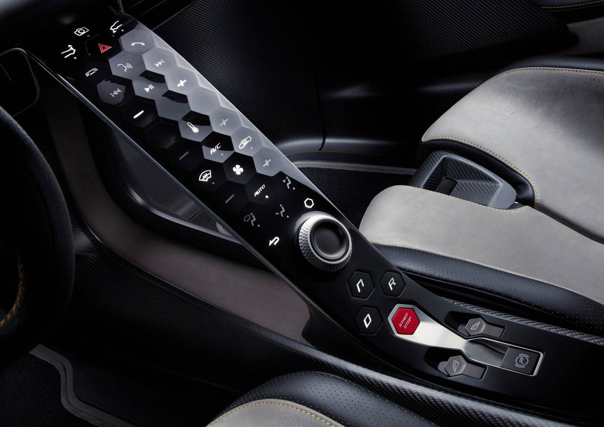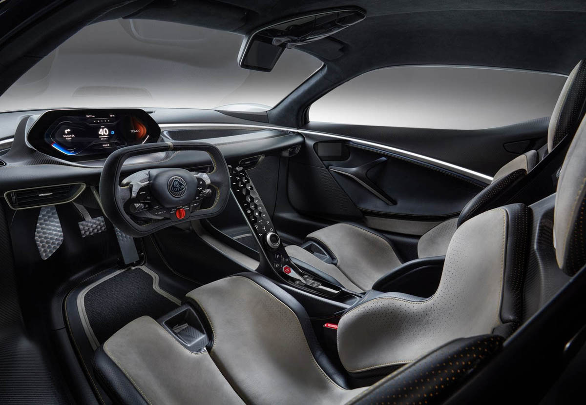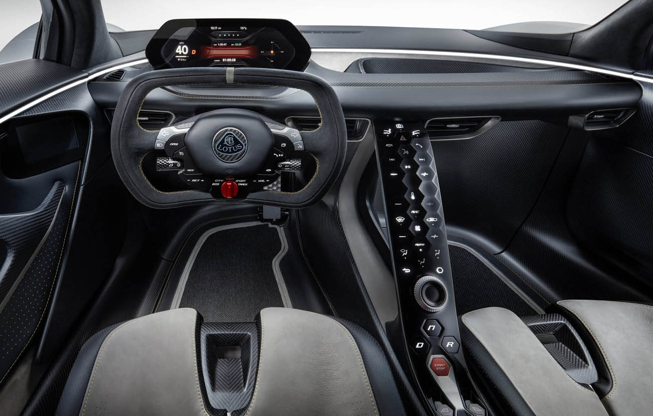 Once in the car, a switch in the roof console closes the doors. The location aids the minimalist layout of the main control panel and prevents them being activated accidentally. Russell Carr, Design Director, Lotus Cars, explained it’s in tribute one of the most iconic Lotus cars, commenting: “Versions of the Lotus Esprit Turbo featured a huge roof console in the late Seventies and early Eighties. It’s not something you might expect on a contemporary hypercar but Lotus fans will love the connection.”