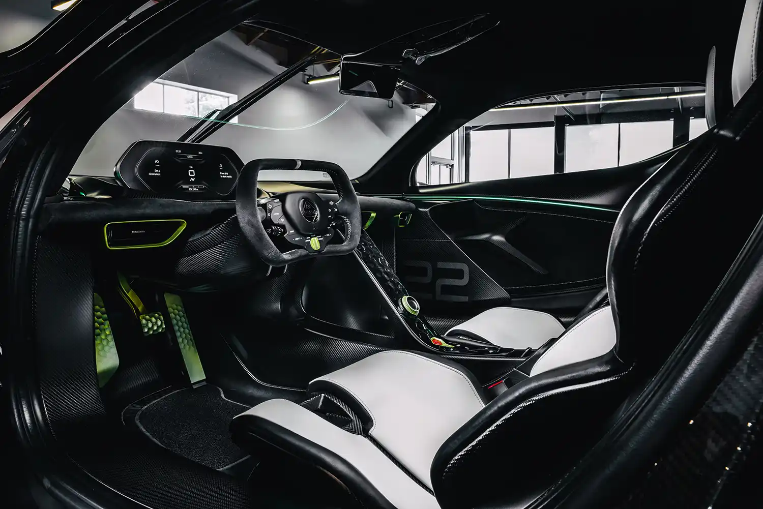 Magnesium wheels provide optimum lightness and strength, and are sized 20 and 21 inches at the front and rear respectively. They are shod with Pirelli Trofeo R tyres, developed specifically to achieve ultimate performance. To deal with the Evija’s extreme performance, the car is equipped with a forged aluminium AP Racing braking system with carbon ceramic discs front and rear.