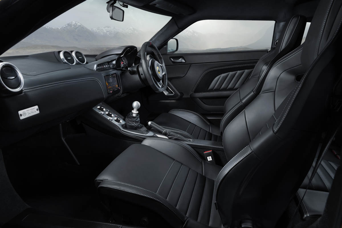 The above upgrades are in addition to the Evora’s already high level of standard equipment. These include a body-coloured roof, side sills, tailgate, front access panel and mirror backs, red AP Racing brake callipers and silver or gloss black V-spoke cast alloy wheels, 19-inch at the front and 20-inch at the rear. Interior equipment includes cruise control, heated seats, rear parking sensors.