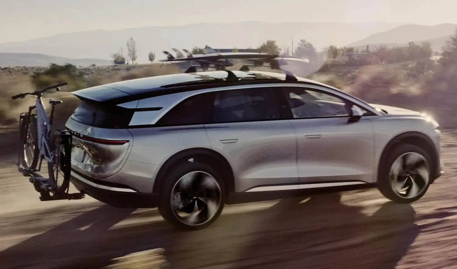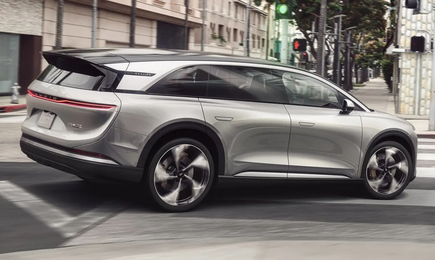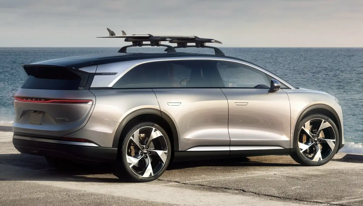 Lucid’s commitment to design excellence, spacious interiors, and versatility further sets Gravity apart from the competition. The exterior design choices are a testament to Gravity’s fusion of aesthetics and utility. A focus on efficiency has led to a target coefficient of drag of less than 0.24, an aerodynamic profile unsurpassed by other three-row SUVs. With a commanding presence supported by a substantial frunk, sleek profile, elongated cabin, pronounced shoulders, and sporty tail spoiler, Gravity showcases its ability to meet the diverse needs of the daily driver.