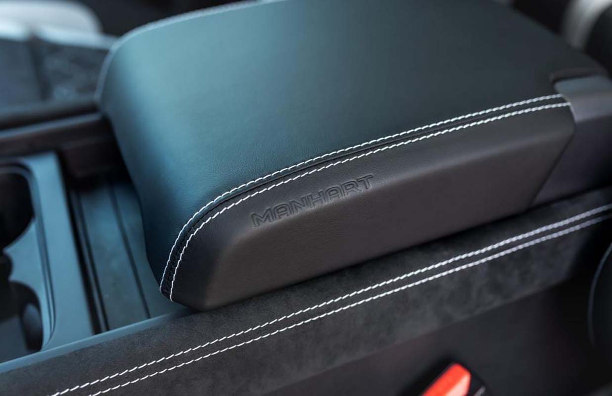 Last but not least, we refined the interior with a high-quality leather/Alcantara interior including individually selectable accents. In addition, there is a set of electrically operated MANHART ErgoMed front seats from RECARO for the driver and front passenger, including heating and cooling as well as integrated airbags.