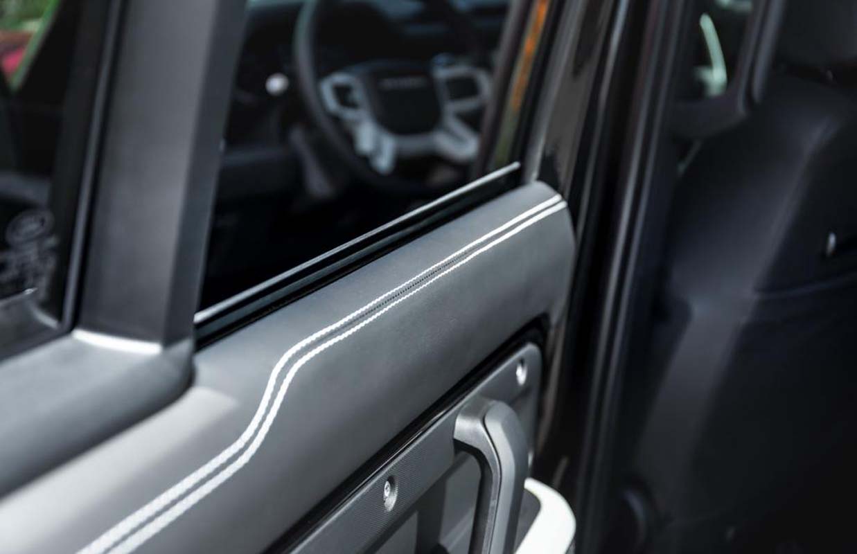 The basis for the model presented is a Defender P400 AWD in the long, five-door body variant 110, whose three-litre, in-line six-cylinder petrol engine generates an impressive 400 hp and 550 Nm even in standard condition thanks to turbocharging. Plenty of power then, but we are nonetheless stepping up the pace at this point by remapping the Defender’s engine control software. This increases the power of the unit to a remarkable 512 hp and 710 Nm, which puts the car on par with the top model, which is powered by a five-litre supercharged V8.