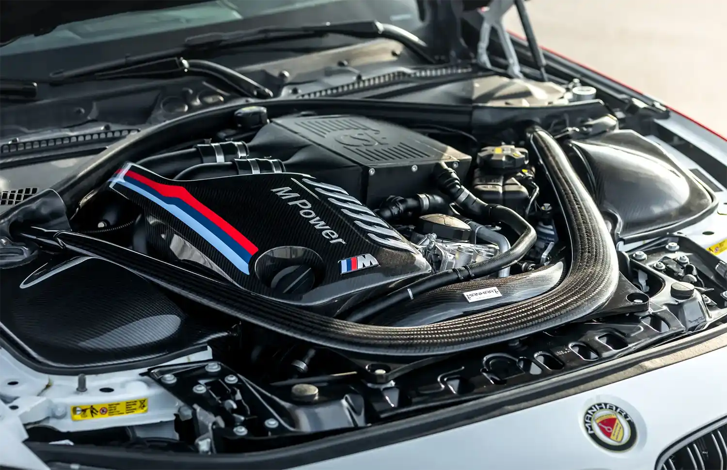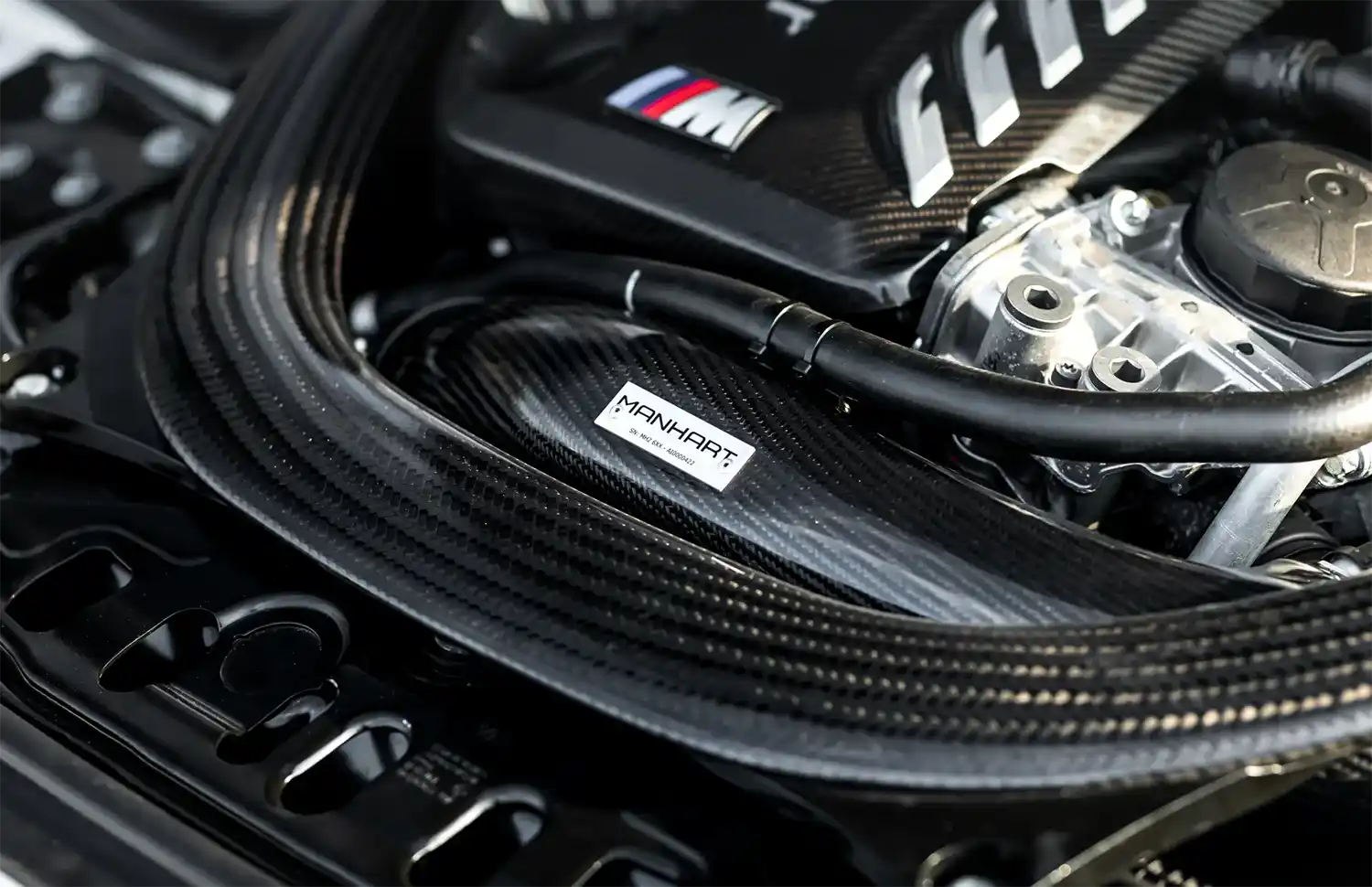 While Manhart usually optimise the suspension, in this case it and the M carbon ceramic brake system remain in their standard condition. Meanwhile, the situation is completely different with regard to the three-litre S55 biturbo in-line six-cylinder engine, which has been extensively refined: A MANHART turbo performance kit with turbo upgrade, a MANHART intercooler by CSF, MANHART replacement aluminium charge pipes and a MANHART carbon intake by ARMAspeed were installed.