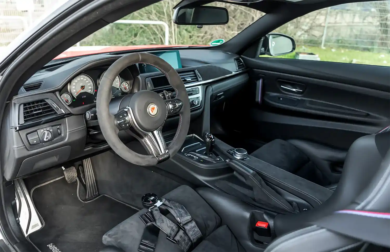 Manhart also upgraded the interior, which was already equipped ex works with Recaro carbon bucket seats and a roll cage, with an additional Awron display. As usual, this replaces one of the central air vents in the cockpit.