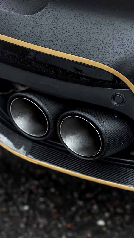 The torque mountain of the twin-turbocharged eight-horsepower engine grows in parallel to up to 920 Nm. In addition to the electronic tuning, MANHART installed a sports exhaust system with valve control, which ends with four carbon fibre tailpipes. The standard OPFs have been removed.