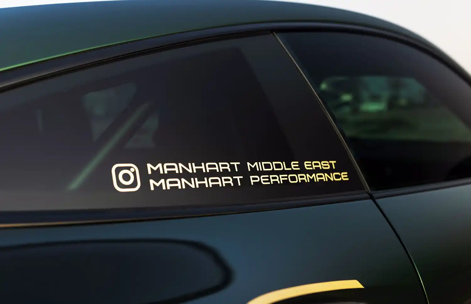 And last but not least, of course, the characteristic MANHART decorative kit is not missing: in this case, the decorative stripes and lettering are applied to the fully foiled body in Midnight Dark Green in gold to match the finish of the rims. MANHART floor mats as discreet individualisation for the interior round off the TR 900.