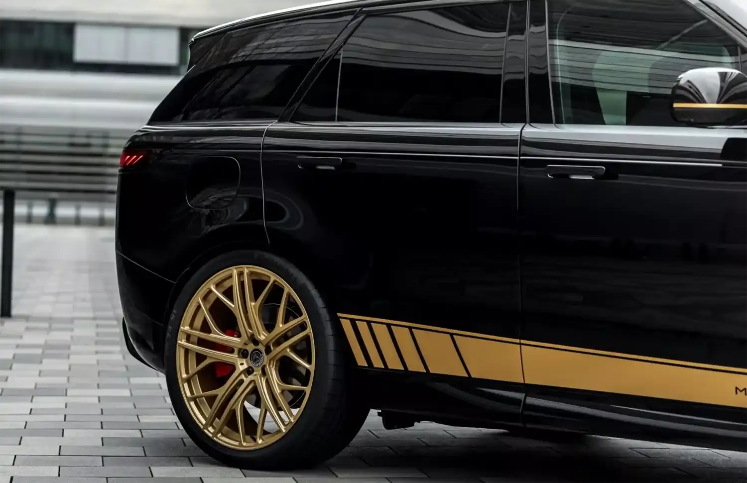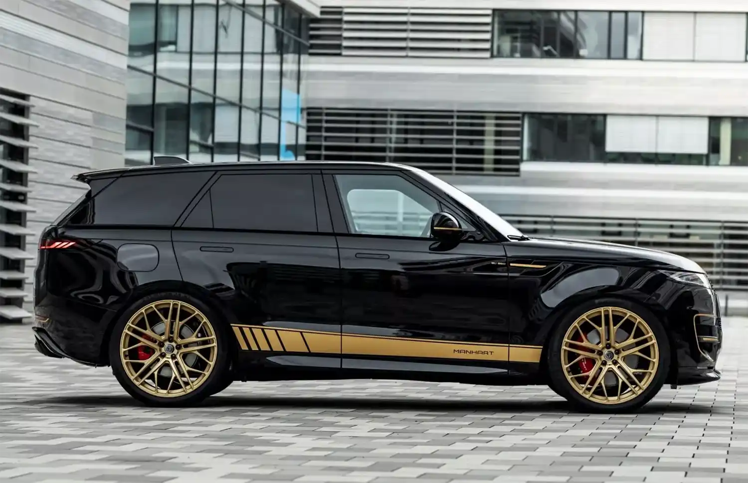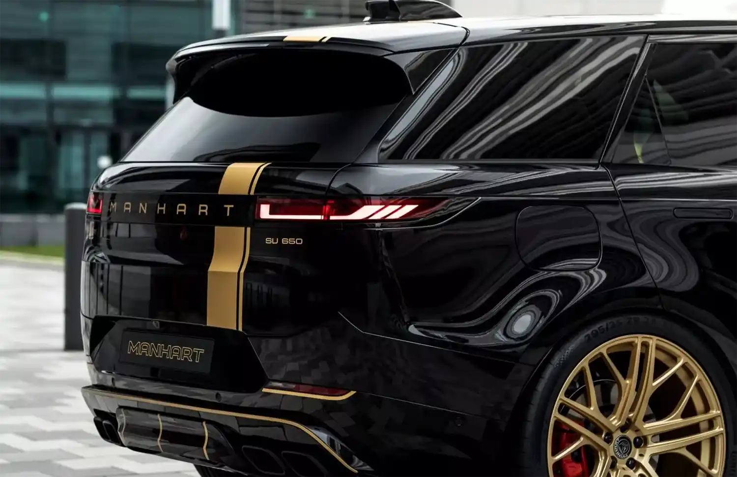 The basis for this visually and technically dynamic creation is the third-generation Range Rover Sport, which was introduced last summer. To be more precise, it is a copy of the P530 model version in the First Edition. This car has the most powerful of two available gasoline units, which is also the only V8 offered and to date the top engine of the Range Rover Sport. The 4.4-liter turbo eight-cylinder produces 530 hp and 750 Nm ex-works and it is a BMW engine from the M850i. By installing the proven MHtronik powerbox, MANHART succeed in coaxing some additional horsepower out of the engine: a whopping 653 hp and 900 Nm are now listed in the data sheet. An even more distinctive sound is provided by a MANHART exhaust system from OPF filters backwards with remote-controlled valves. Unfortunately, however, there is no TÜV certificate for this or the performance upgrade yet. The only exception is the rear silencer.
