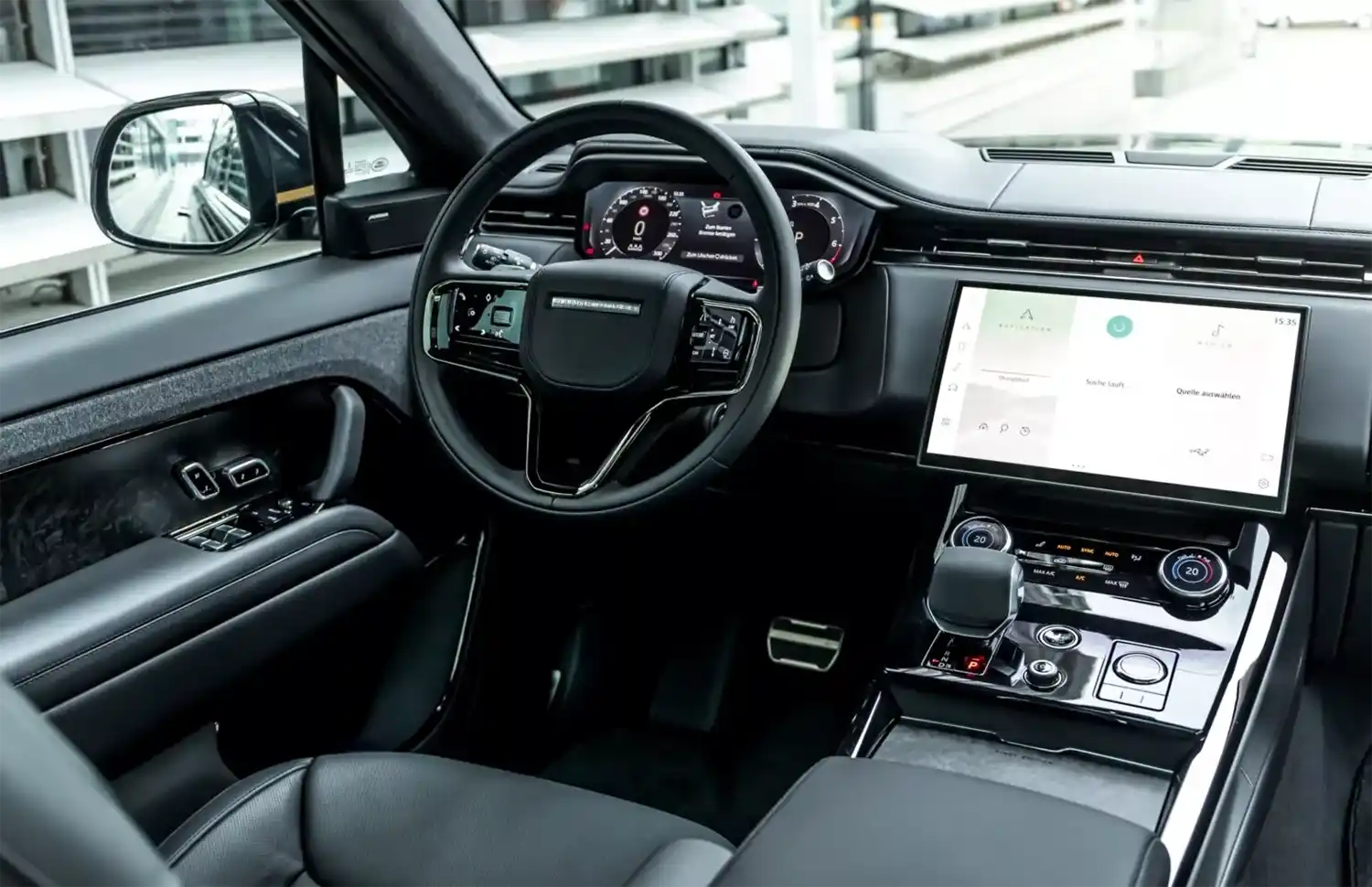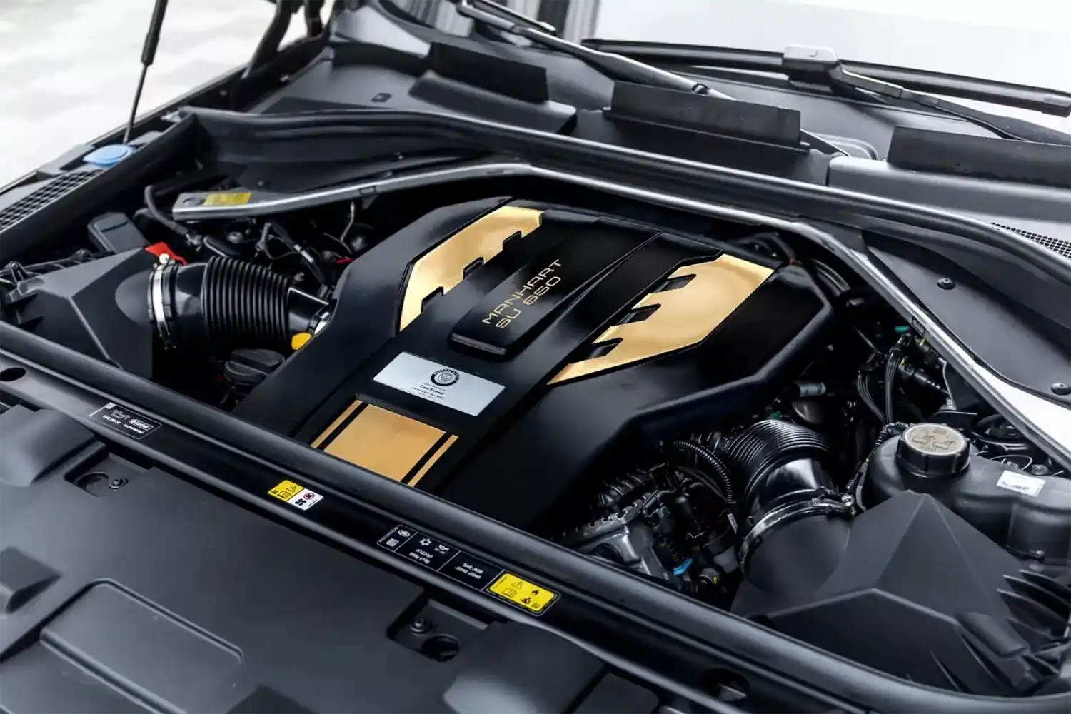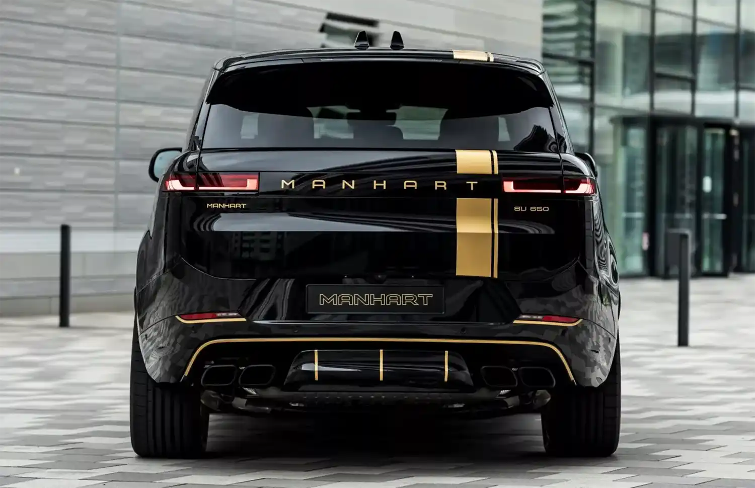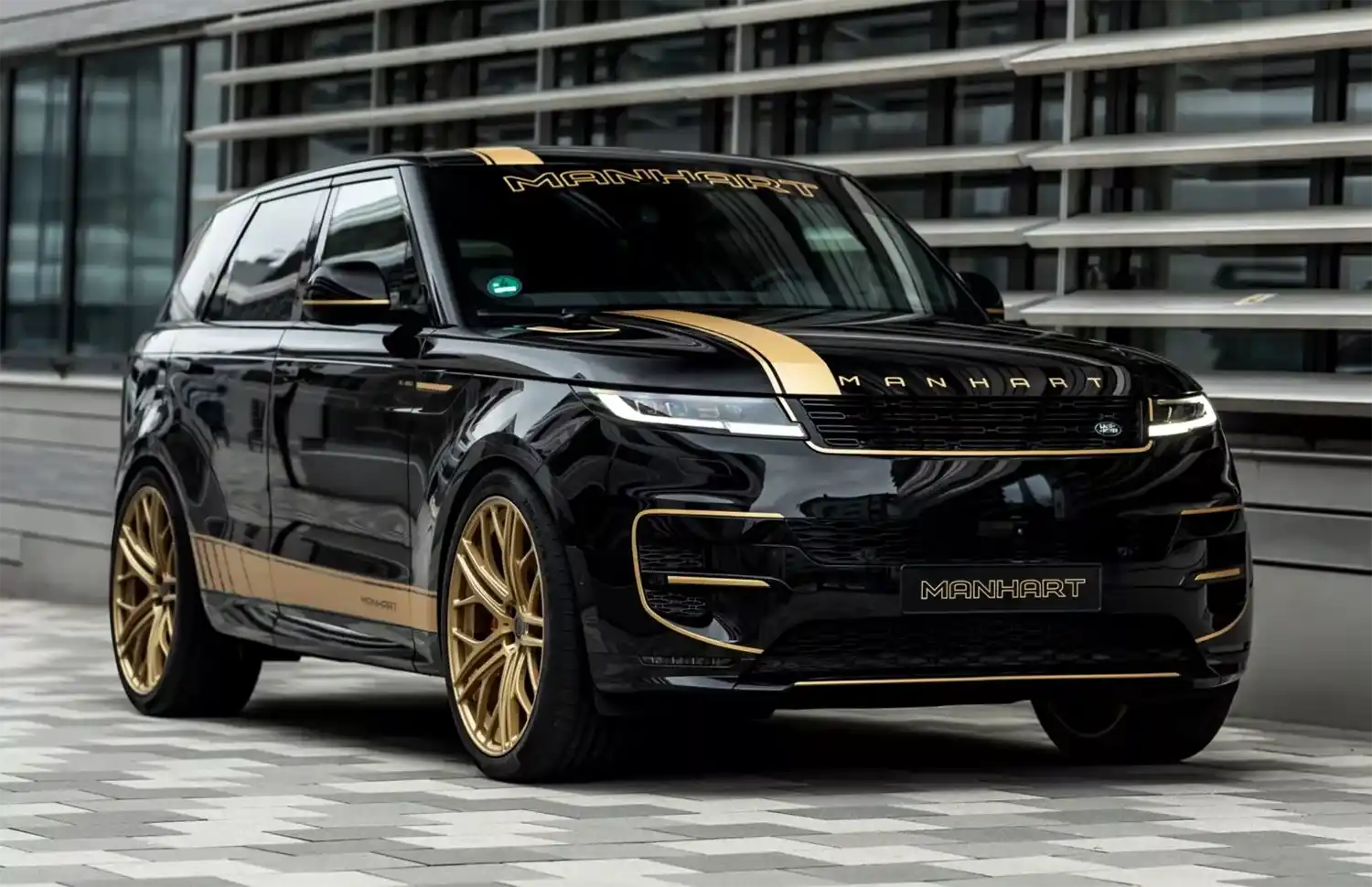 The basis for this visually and technically dynamic creation is the third-generation Range Rover Sport, which was introduced last summer. To be more precise, it is a copy of the P530 model version in the First Edition. This car has the most powerful of two available gasoline units, which is also the only V8 offered and to date the top engine of the Range Rover Sport. The 4.4-liter turbo eight-cylinder produces 530 hp and 750 Nm ex-works and it is a BMW engine from the M850i. By installing the proven MHtronik powerbox, MANHART succeed in coaxing some additional horsepower out of the engine: a whopping 653 hp and 900 Nm are now listed in the data sheet. An even more distinctive sound is provided by a MANHART exhaust system from OPF filters backwards with remote-controlled valves. Unfortunately, however, there is no TÜV certificate for this or the performance upgrade yet. The only exception is the rear silencer.